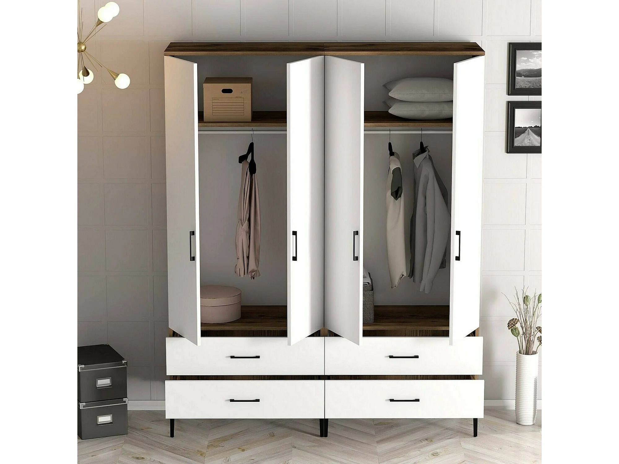 Grande Garde-robe Dfurlott, Meubles de chambre, Penderie de plain-pied, Placard à vêtements, 160x201h48 cm, Noyer et Blanc