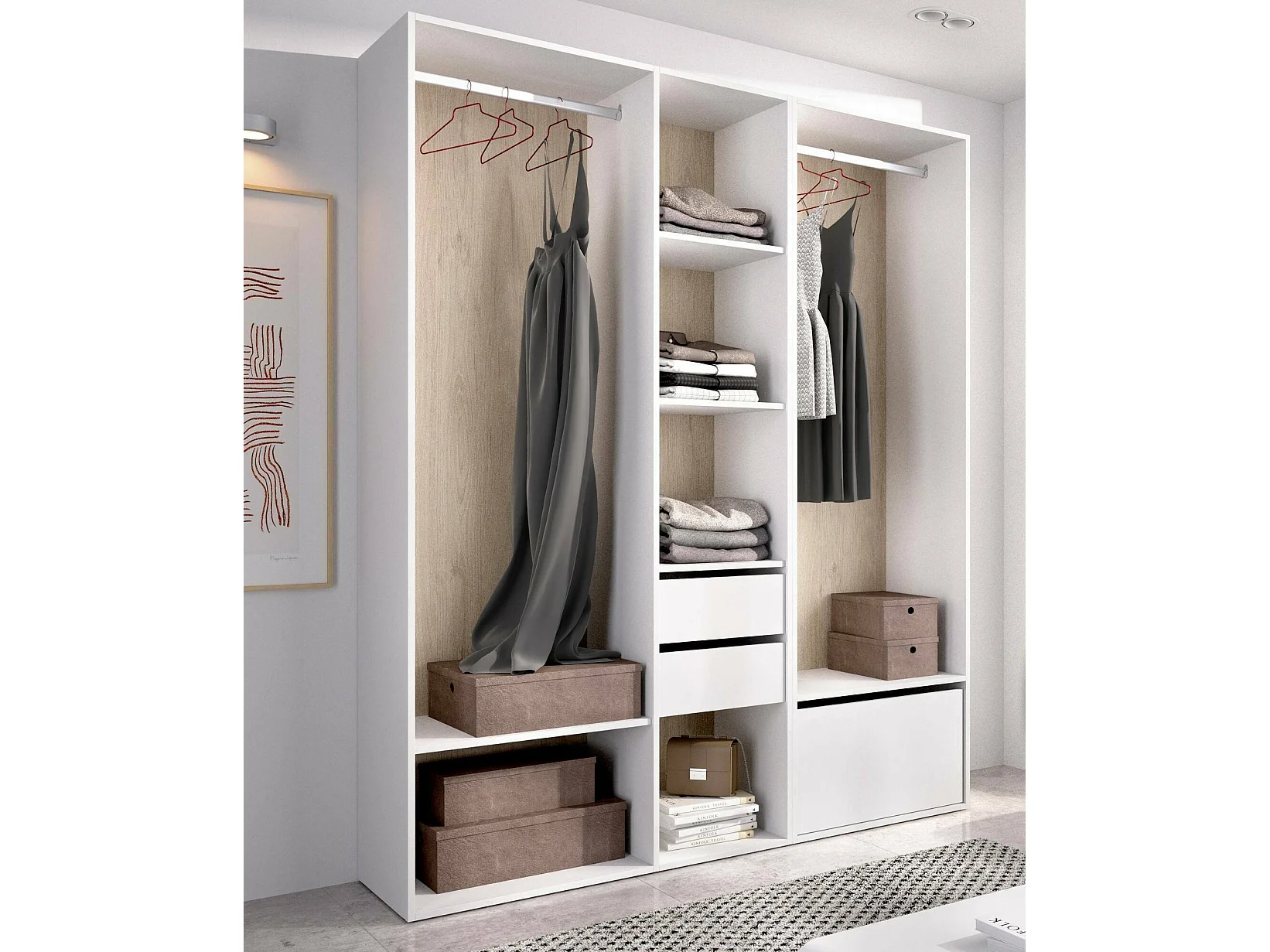 Grande Garde-robe Dhorsche, Meubles de chambre, Penderie de plain-pied, Placard à vêtements, 158x45 h205 cm, Blanc et Chêne clair