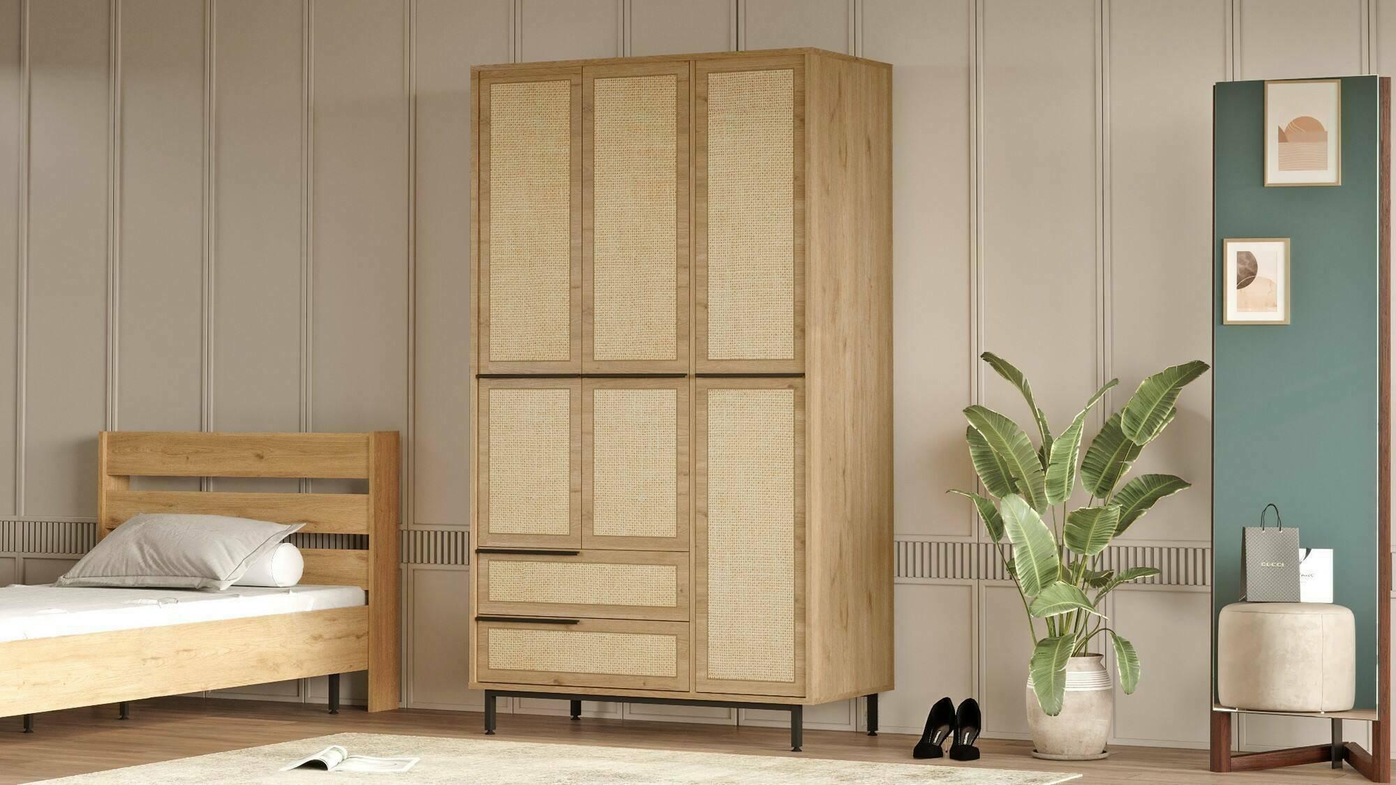 Grande Garde-robe Dmattiell, Meubles de chambre, Penderie de plain-pied, Placard à vêtements, 112x55 h196 cm, Noyer et Chêne
