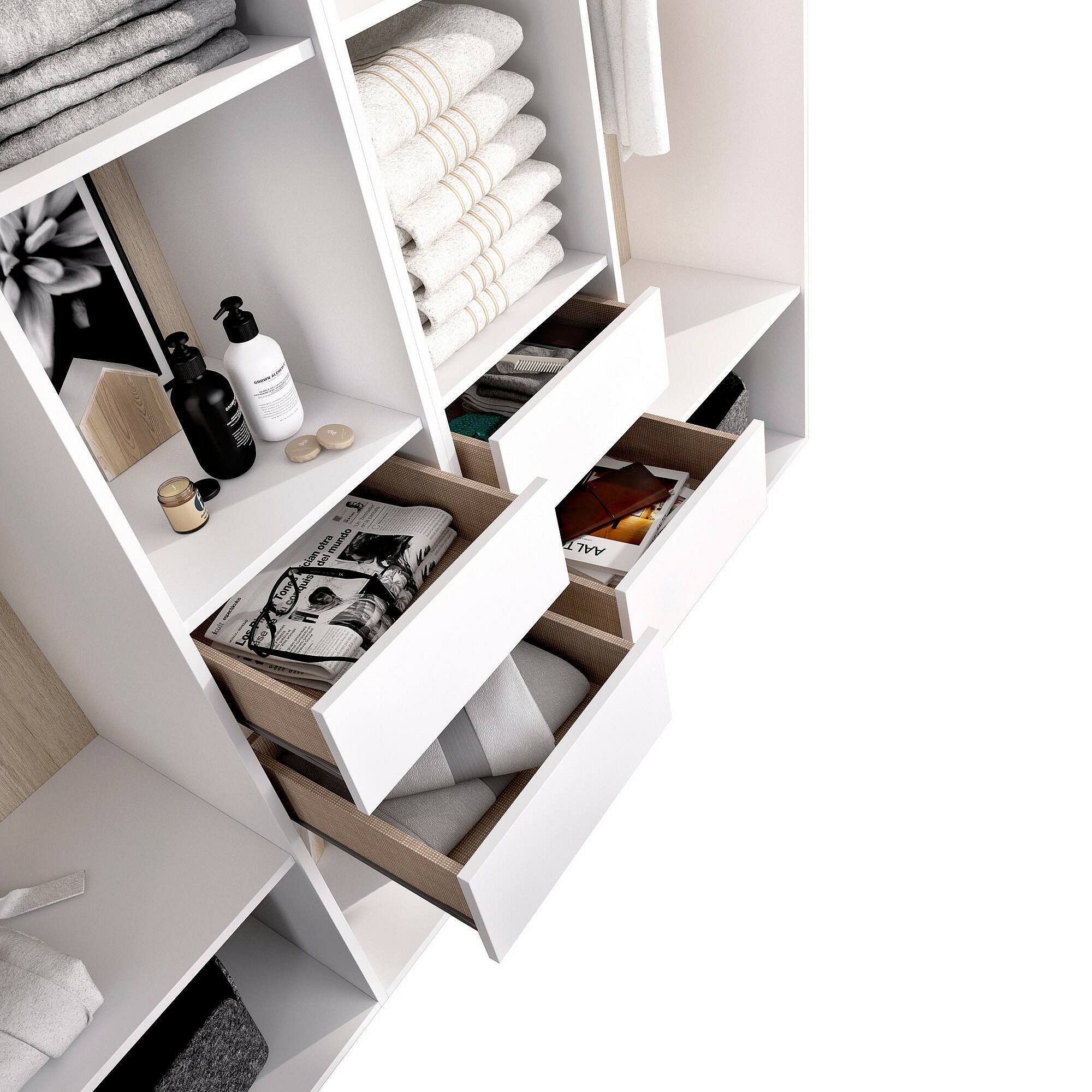 Grande Garde-robe Dscot, Meubles de chambre, Penderie de plain-pied, Placard à vêtements, 98x45 h205 cm, Blanc et Chêne clair