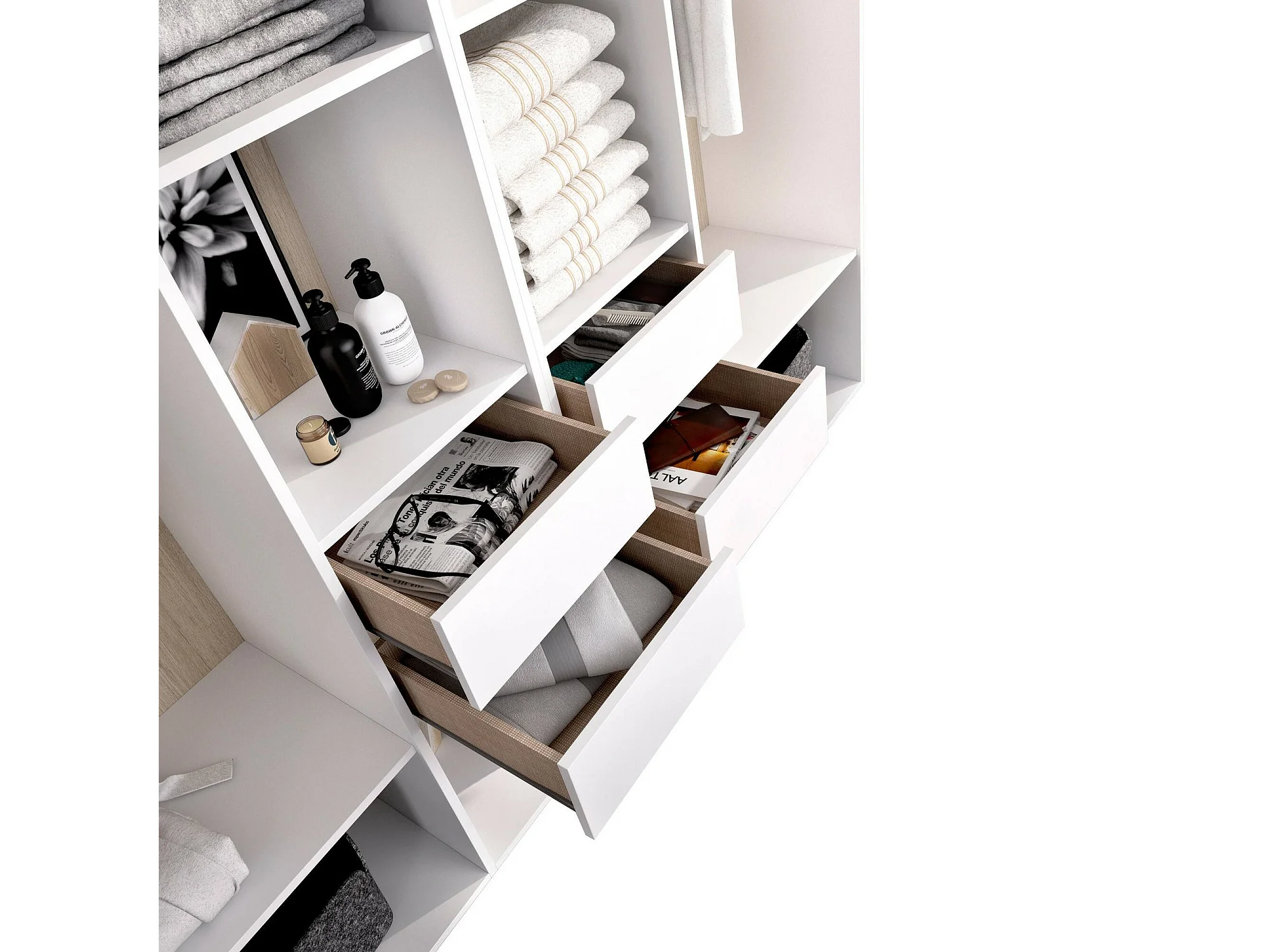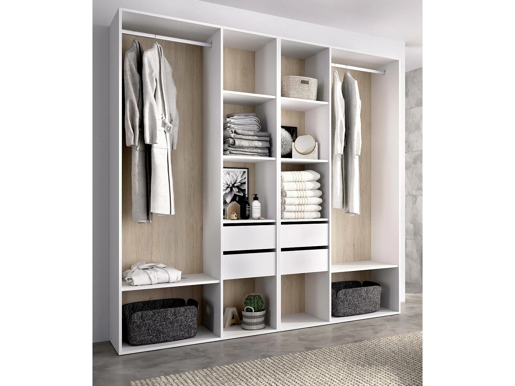 Grande Garde-robe Dpavo, Meubles de chambre, Penderie de plain-pied, Placard à vêtements, 196x45 h205 cm, Blanc et Chêne clair
