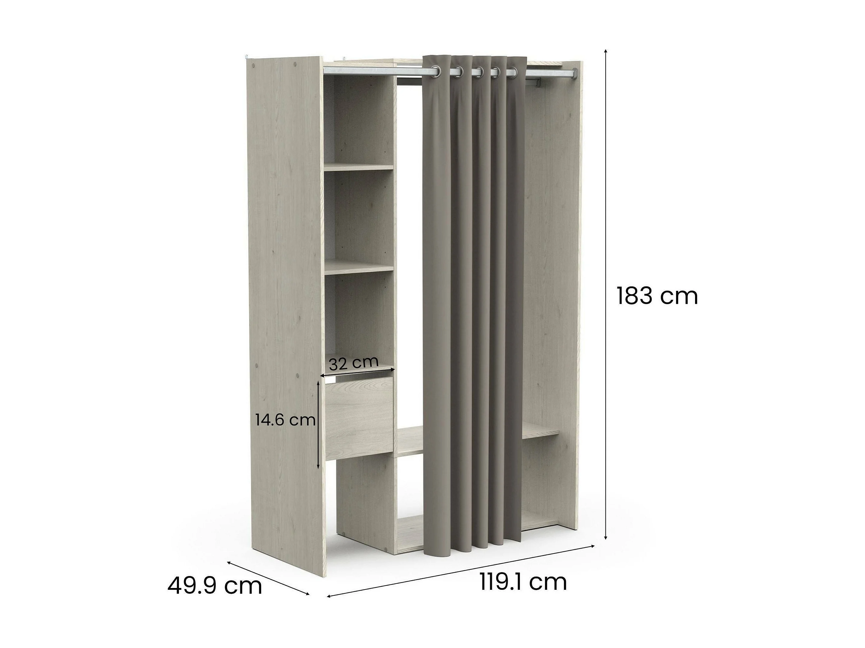 Grande Garde-robe Dpayn, Meubles de chambre, Penderie de plain-pied, Placard à vêtements, 119x50 h183 cm, Chêne clair