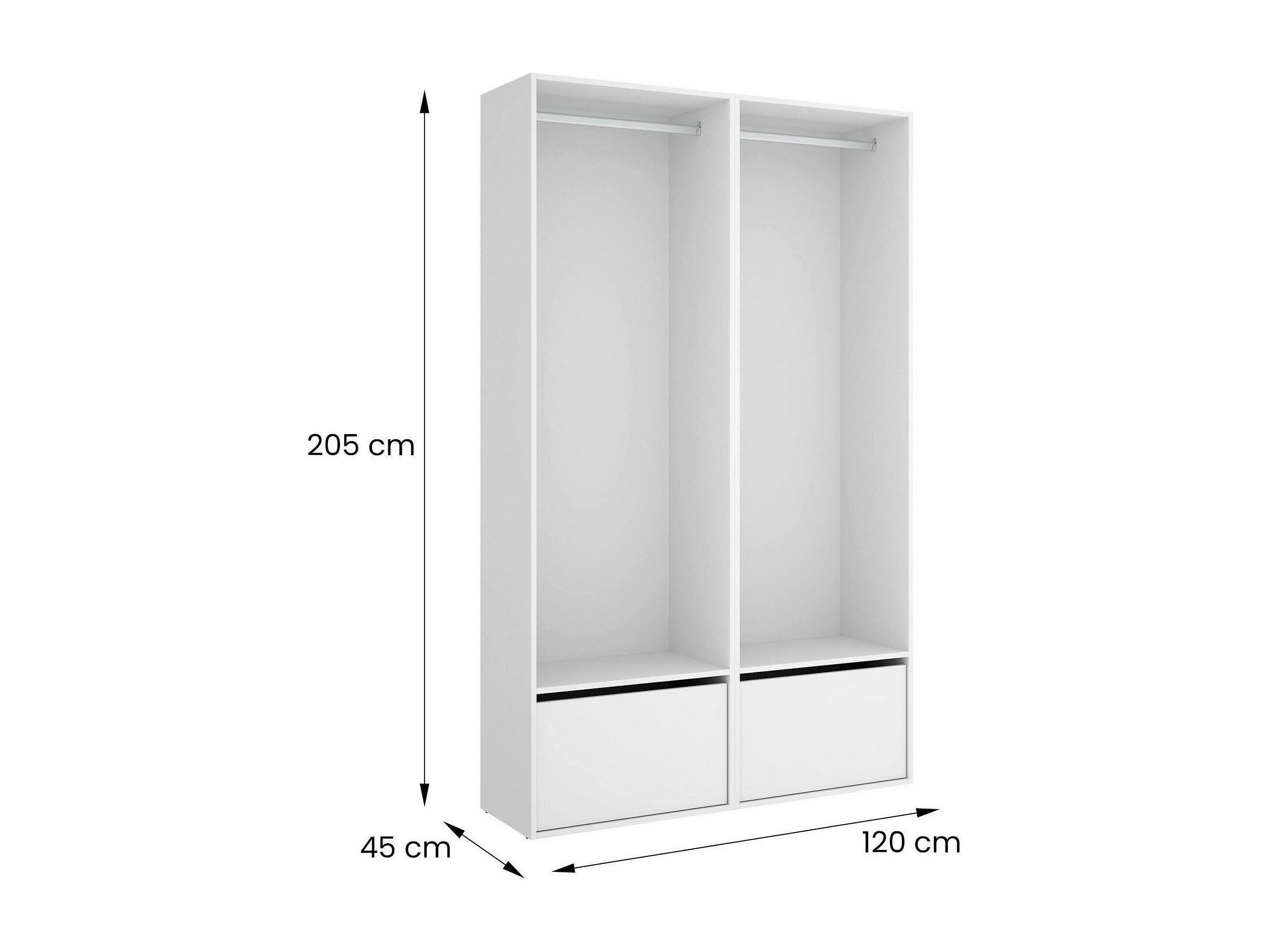 Grande Garde-robe Dra, Meubles de chambre, Penderie de plain-pied, Placard à vêtements, 120x45 h205 cm, Blanc et Chêne clair