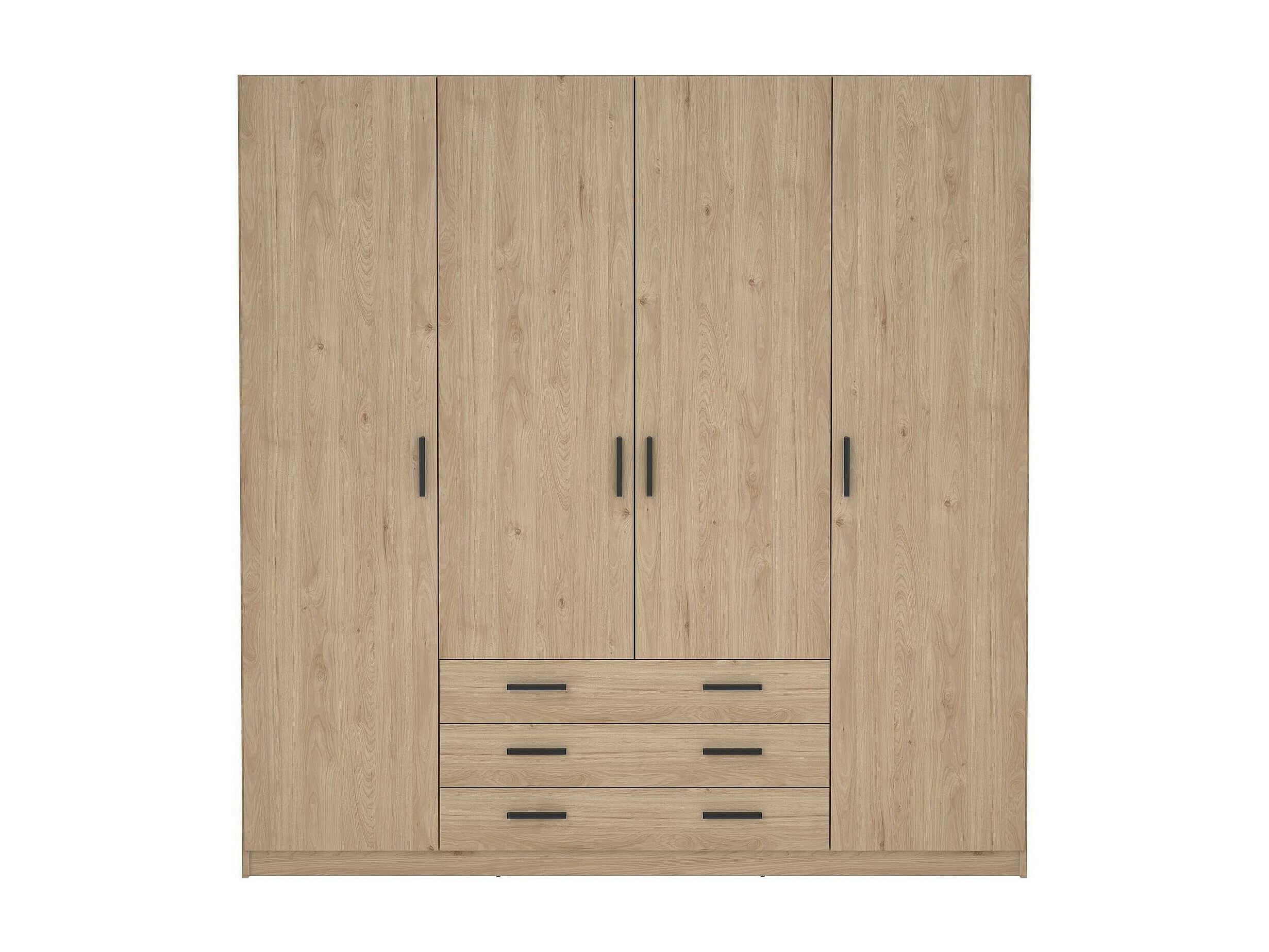 GRANDE GARDE-ROBE - Meubles de chambre, Penderie de plain-pied, Placard à vêtements, 196x50 h200 cm, Chêne clair. STRUCTURE ET UTILISATION - Armoire-penderie polyvalente idéale pour garantir un grand espace de rangement, adaptée pour contenir des vêtements, des chaussures et des accessoires - Toute la structure design du meuble est multifonctionnelle, parfaite pour meubler une chambre double ou une chambre d'enfant dans un espace- moyen d'économie ou la chambre d'amis - Solution élégante qui vous permet d'organiser vos vêtements avec style, offrant de grands espaces et des fonctionnalités conçues pour répondre à vos besoins de stockage, tout en ajoutant une touche de raffinement et d'ordre à votre environnement domestique. QUALITÉ ET DESIGN - Meuble au design moderne et élégant, parfait pour meubler un environnement contemporain et lumineux - Idéal pour ceux qui recherchent des solutions fonctionnelles et peu encombrantes, ce produit est parfait pour les maisons et les appartements de toutes tailles - Garantie de deux ans à compter de la date d'achat. CARACTÉRISTIQUES TECHNIQUES - Accessoire d'ameublement polyvalent, conçu pour une intégration facile avec d'autres meubles - Emballage résistant, conçu pour le commerce électronique - Matériau: Panneau de particules mélaminé - Informations supplémentaires: Article certifié EPA 40 CFR TSCA - Libération de formaldéhyde conforme aux directives IOS/MAT/0181/EN 16953 - Démonté - Equipé d'un kit de montage - Quatre portes battantes - Trois tiroirs - Equipé d'une barre pour cintres. DIMENSIONS EN CM - Grande Garde-robe : Longueur: 195,5 Largeur: 49,6 Hauteur: 200,4 - Dimensions supplémentaires: Ouverture porte : 47,8 cm - Ouverture tiroir 23,3 cm