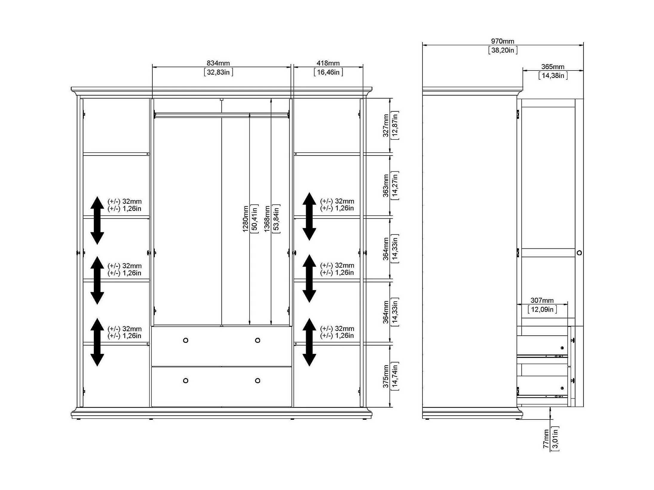 Grande Garde-robe Dsersant, Meubles de chambre, Penderie de plain-pied, Placard à vêtements, 181x61 h201 cm, Gris