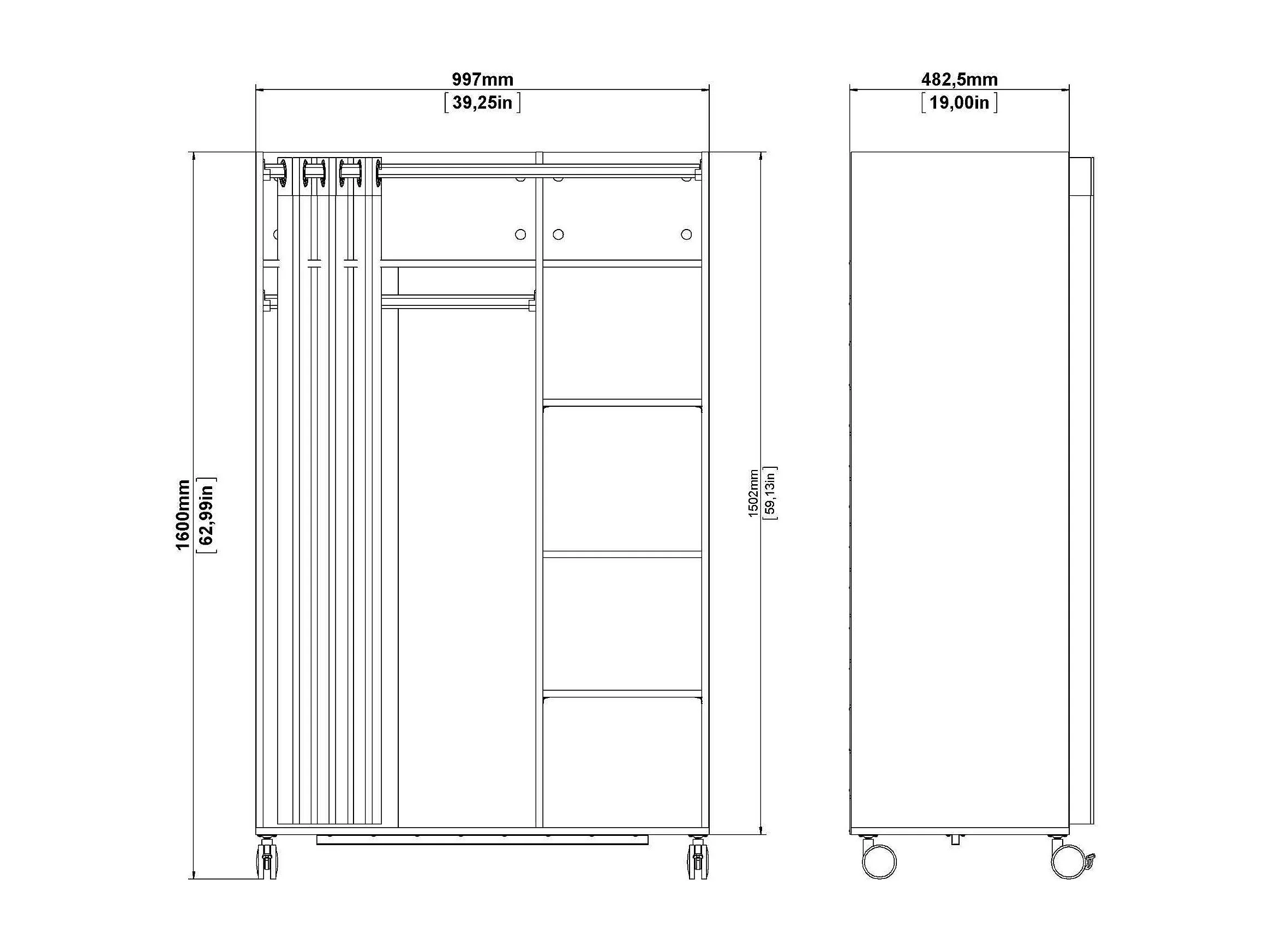 Grande Garde-robe Dsesi, Meubles de chambre, Penderie de plain-pied, Placard à vêtements, 100x48 h160 cm, Chêne clair et Beige