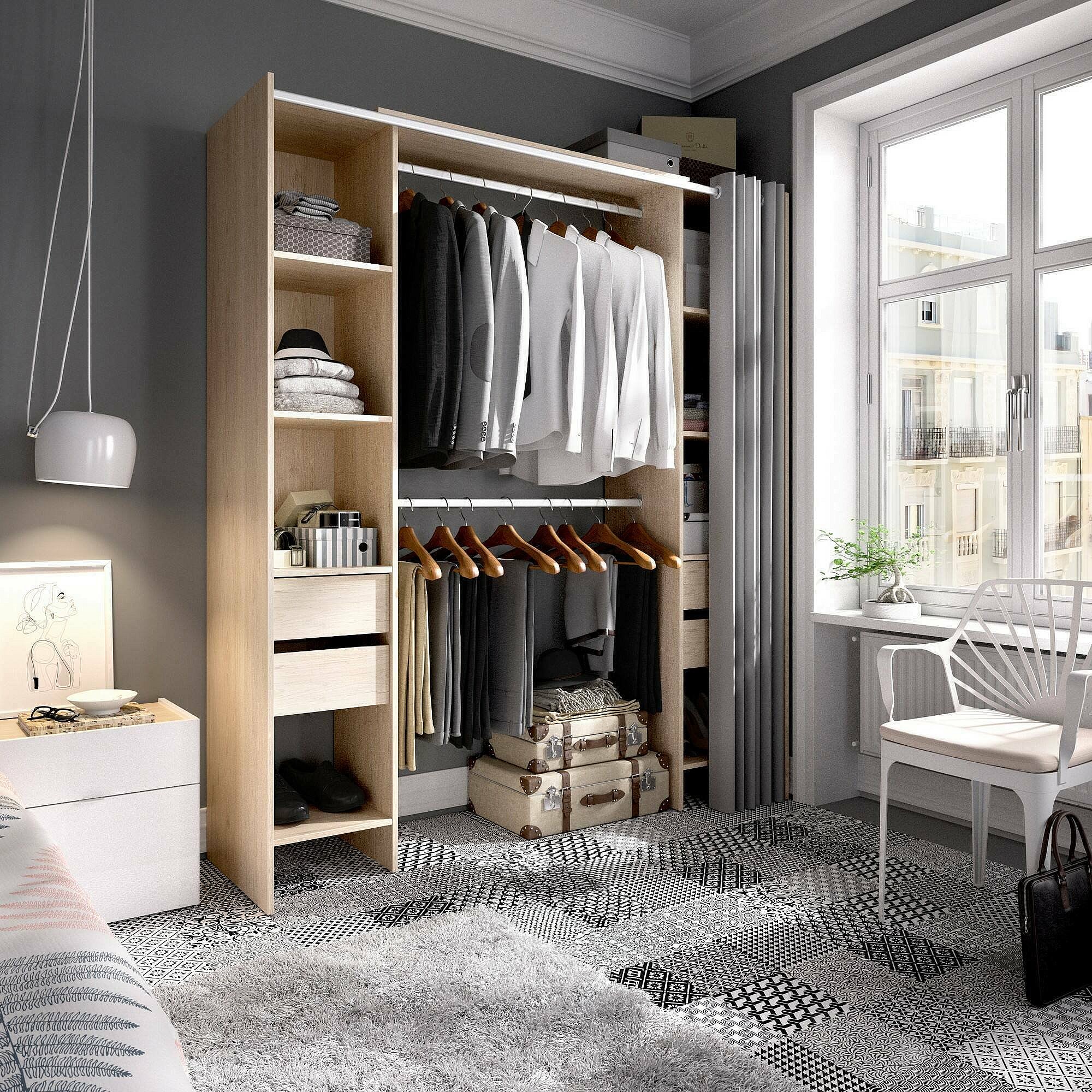 Grande Garde-robe Dstrak, Meubles de chambre, Penderie de plain-pied, Placard à vêtements, 180x50 h205 cm, Chêne clair