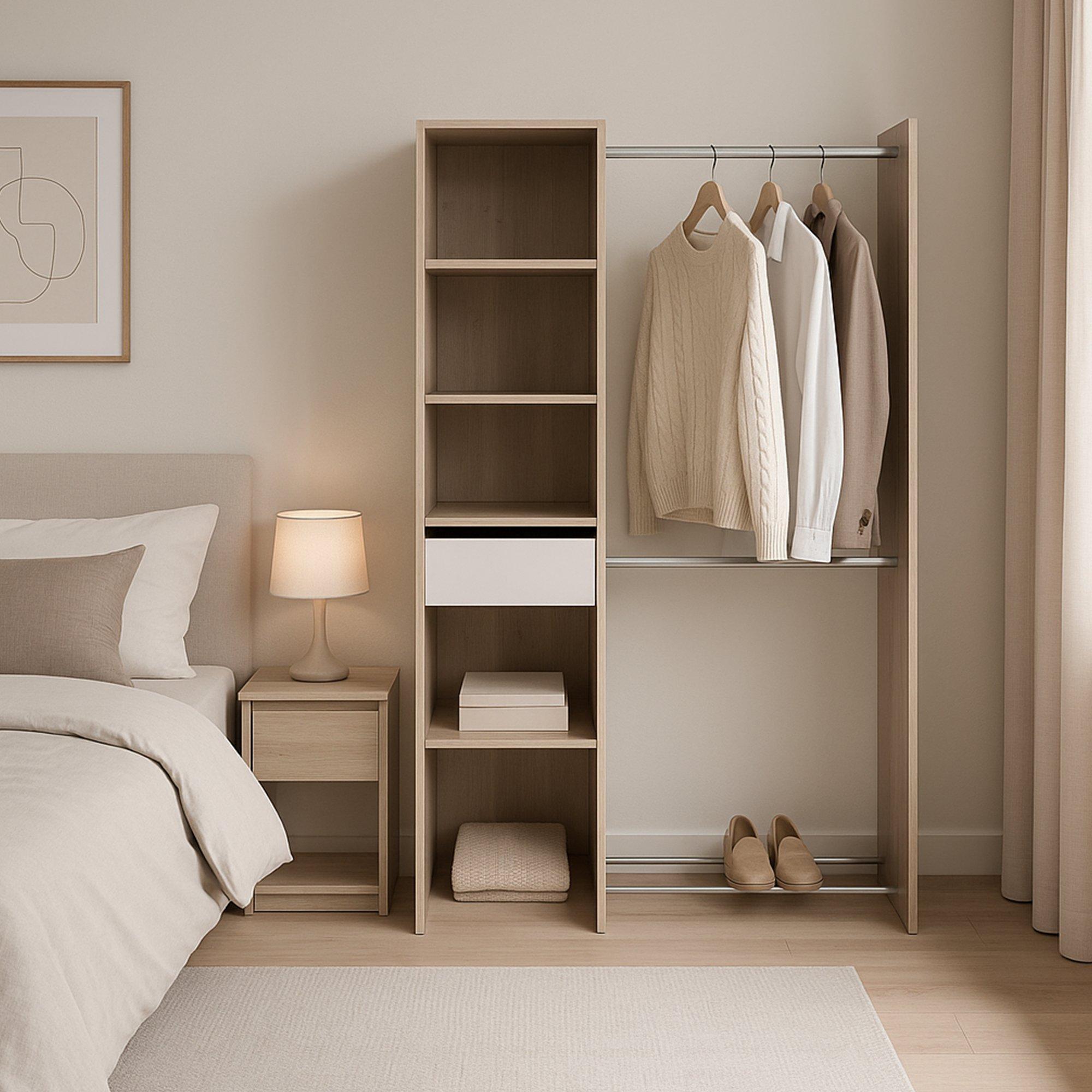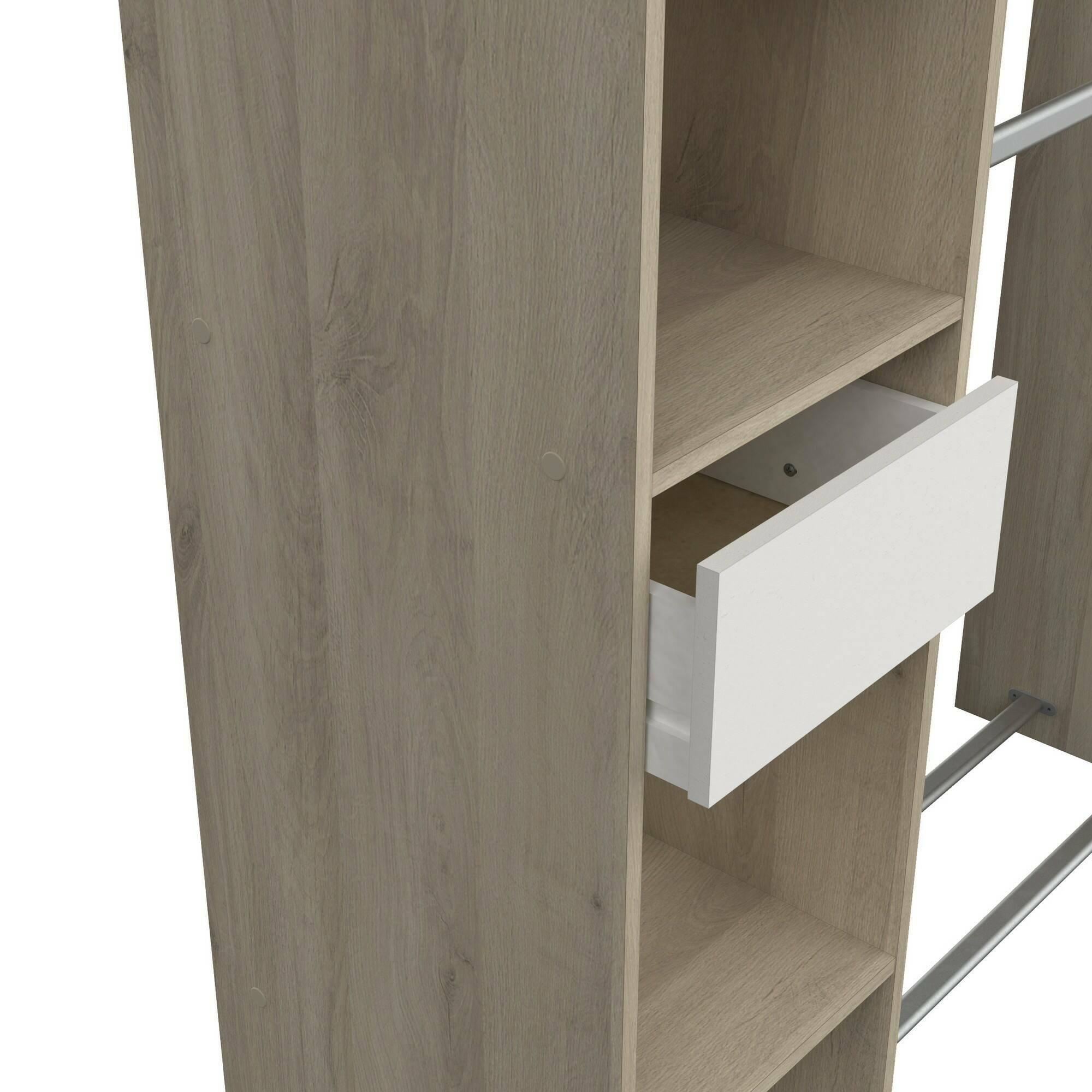 Grande Garde-robe Dyamashit, Meubles de chambre, Penderie de plain-pied, Placard à vêtements, 118x40 h183 cm, Chêne et Blanc mat