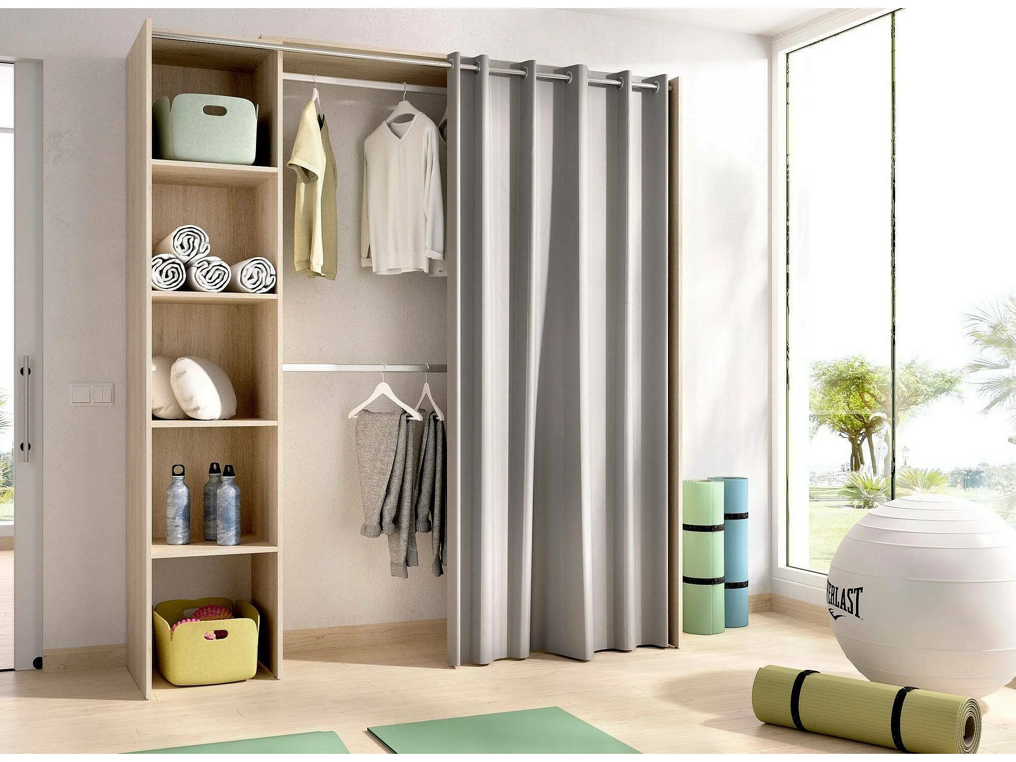 Grande Garde-robe Dyoun, Meubles de chambre, Penderie de plain-pied, Placard à vêtements, 180x50 h205 cm, Chêne clair