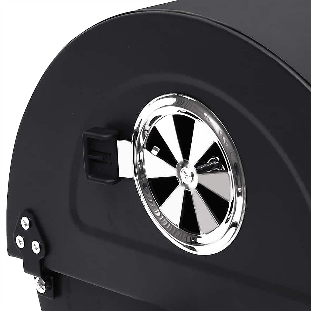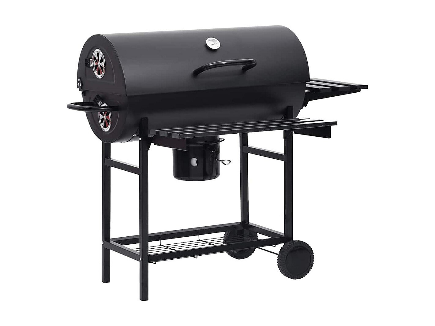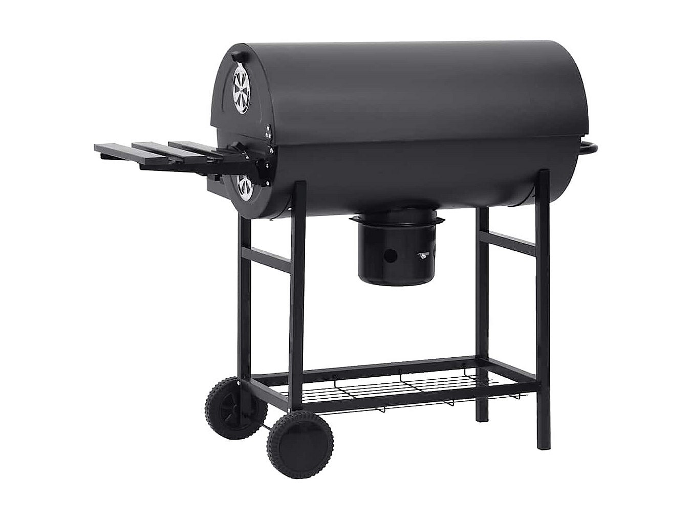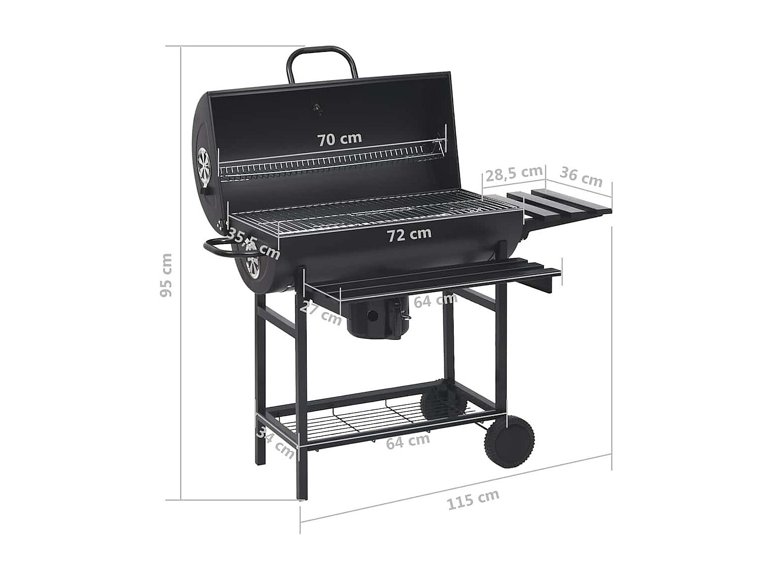 Gril à baril avec roues et étagères Noir Acier 115x85x95 cm