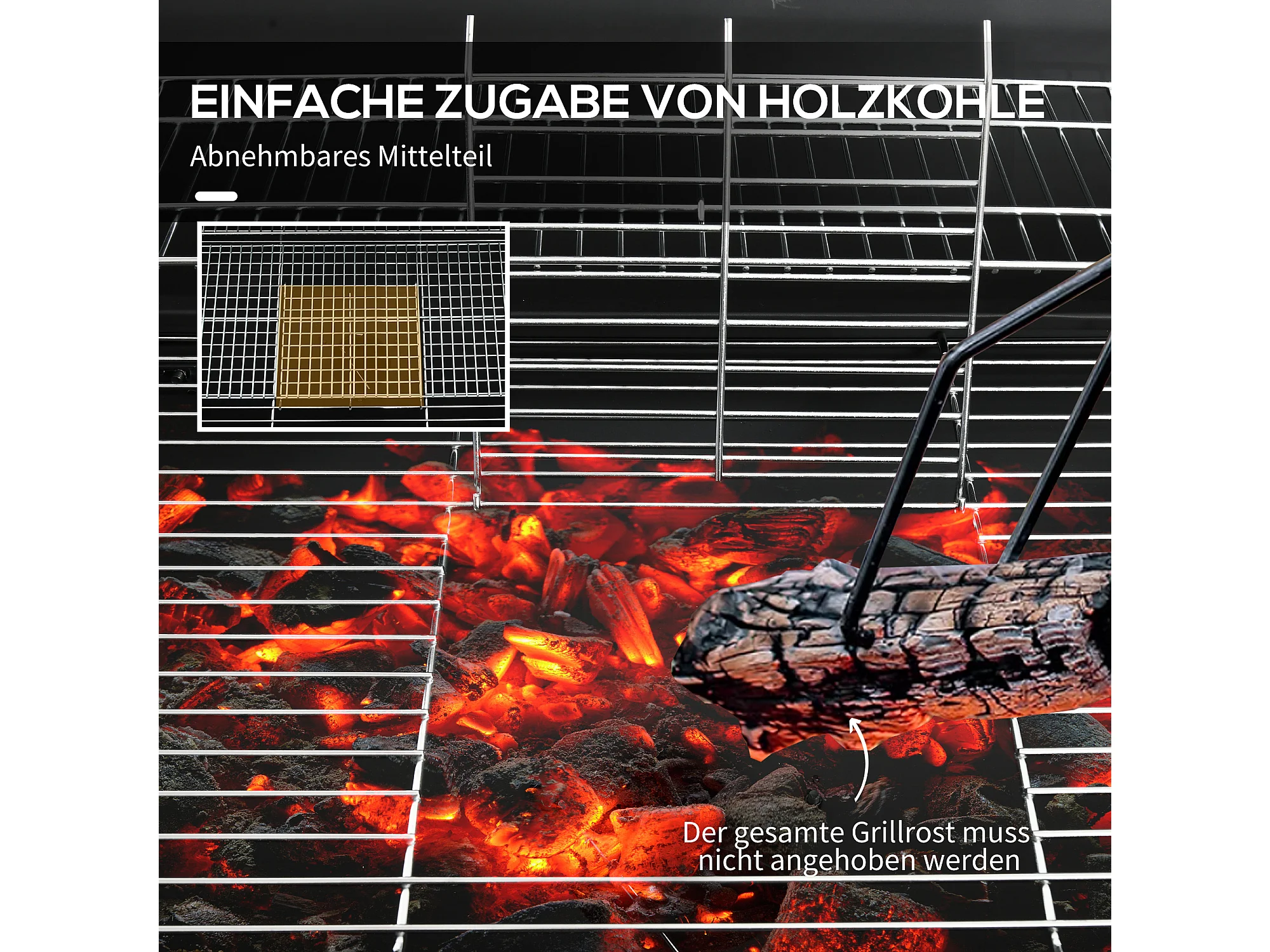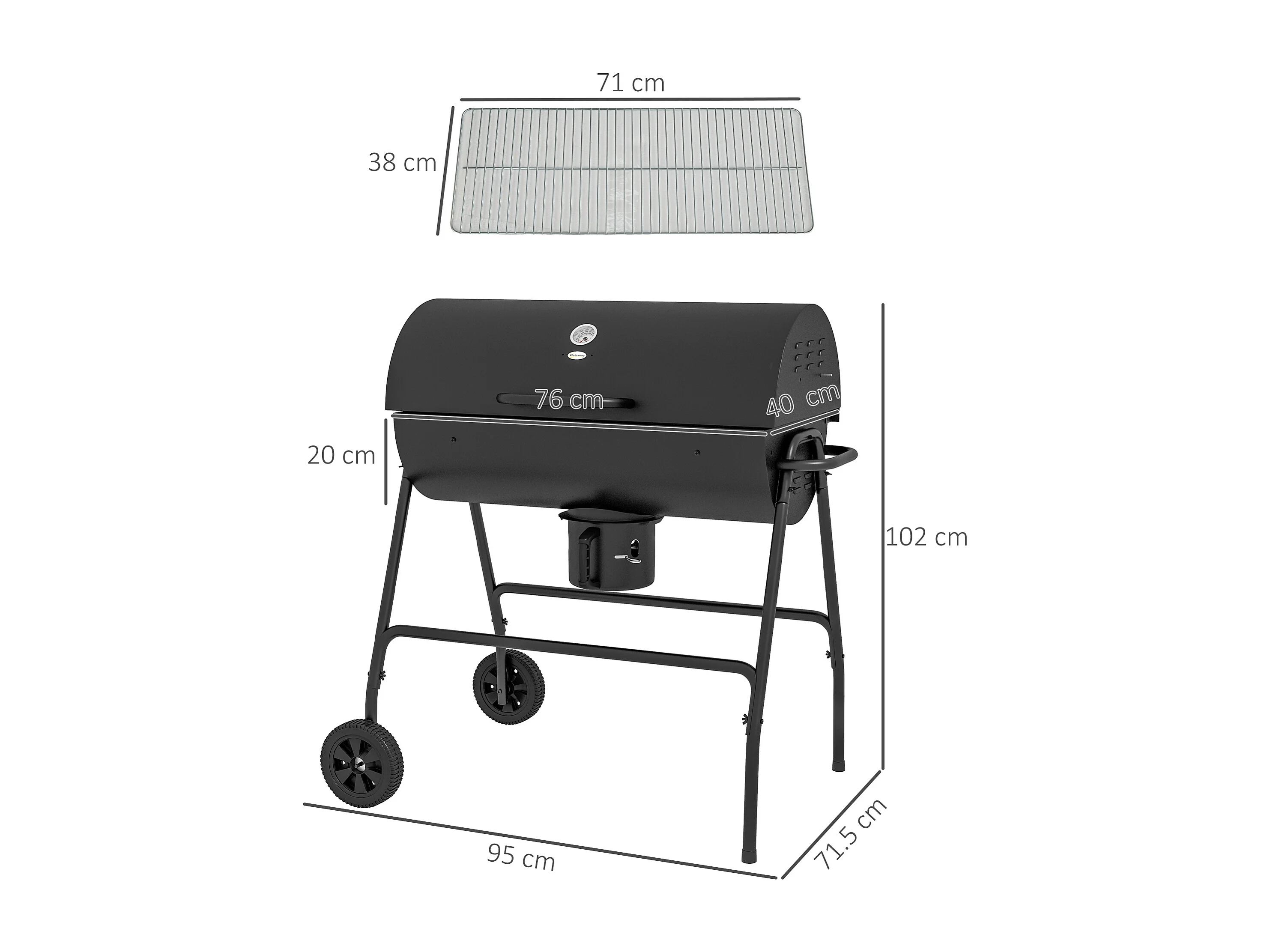 Grill à charbon mobile, avec couvercle et thermomètre, en métal, noir (95x71.5x102 cm)
