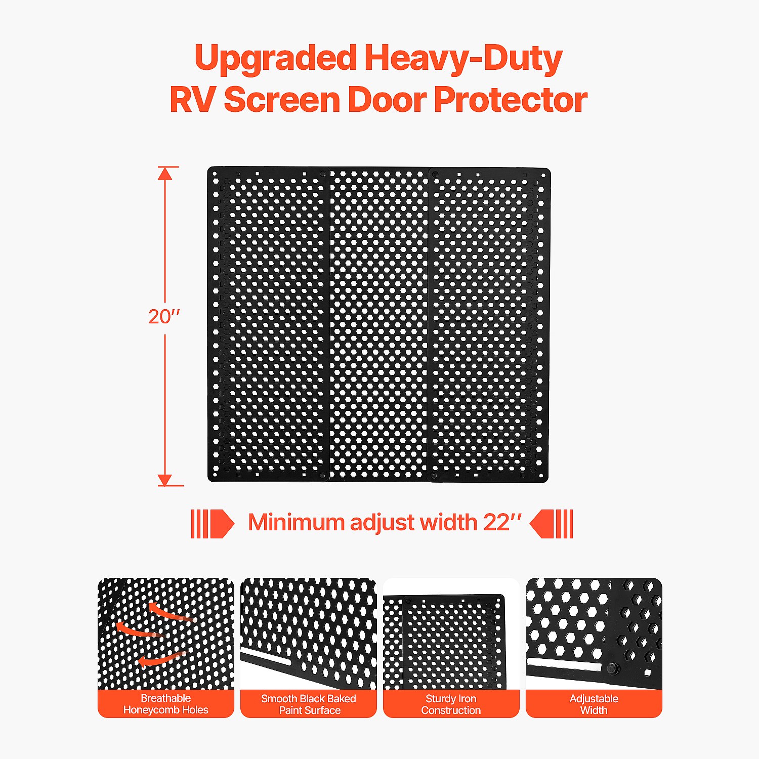 Grille de Porte SucceBuy d'Entrée de Camping-Car Réglable 55.9-80 cm, Protection d'Écran pour Porte RV en Fer, Trous Renforcés Respirants en Nid d'Abeille