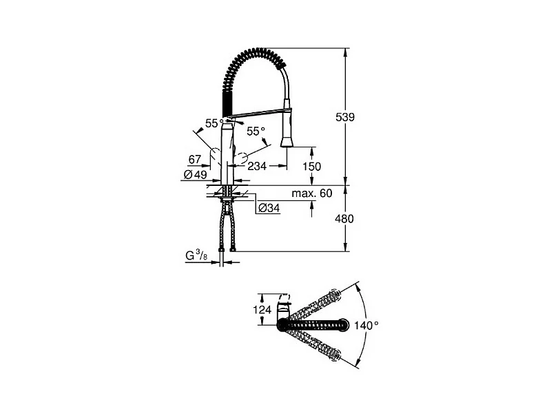GROHE QUICKFIX Start Robinet de cuisine evier Start, rotation 140?, robinet de cuisine, chrome, 30530002