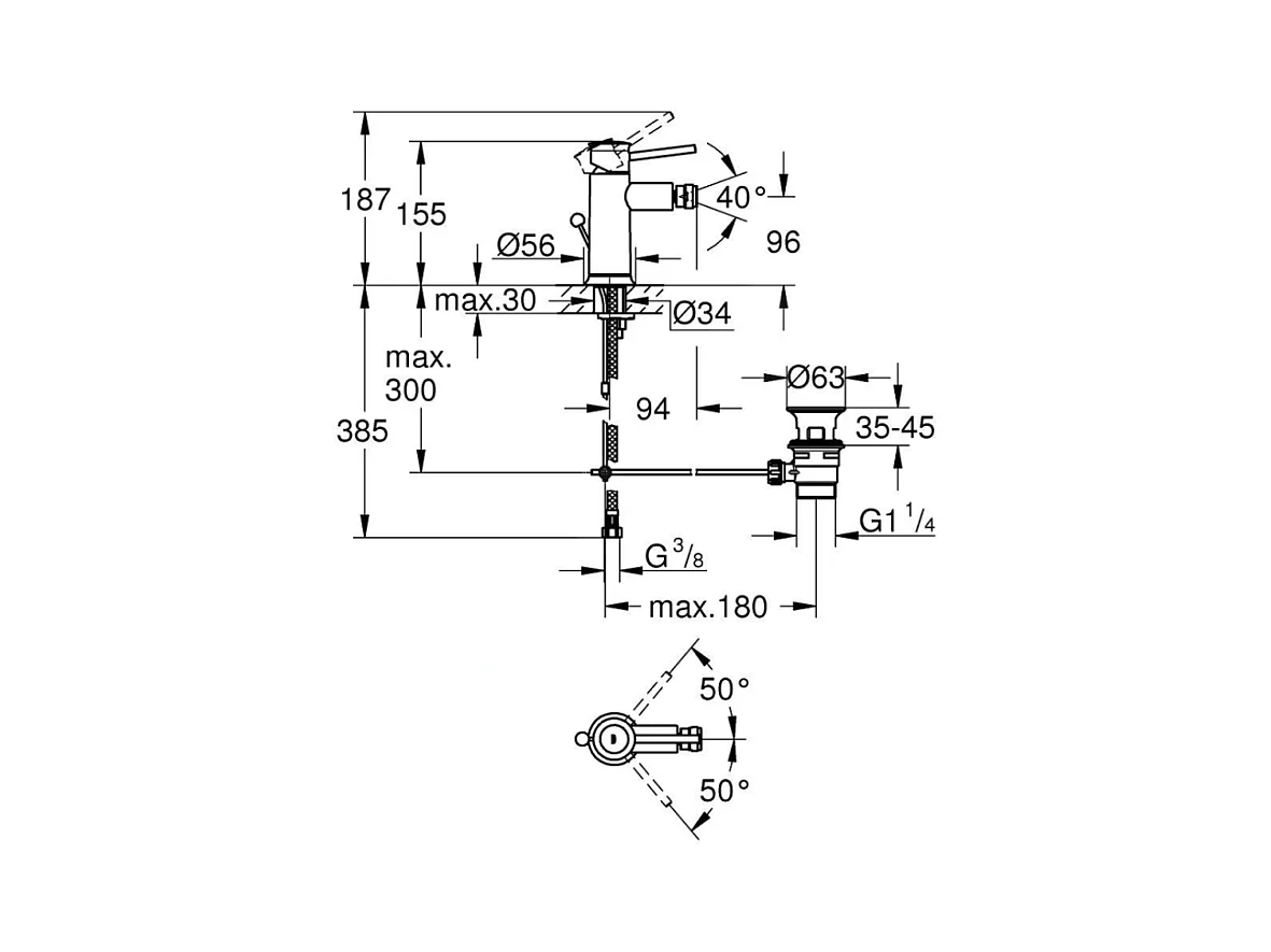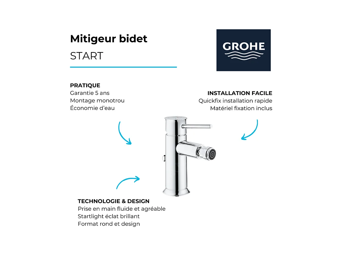 Mitigeur bidet avec vidage GROHE Start quickfix