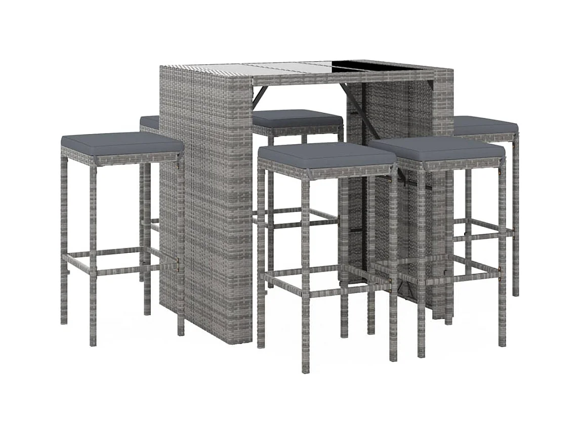 Grylin Ensemble de bar de jardin 7 pcs avec coussins gris poly rotin