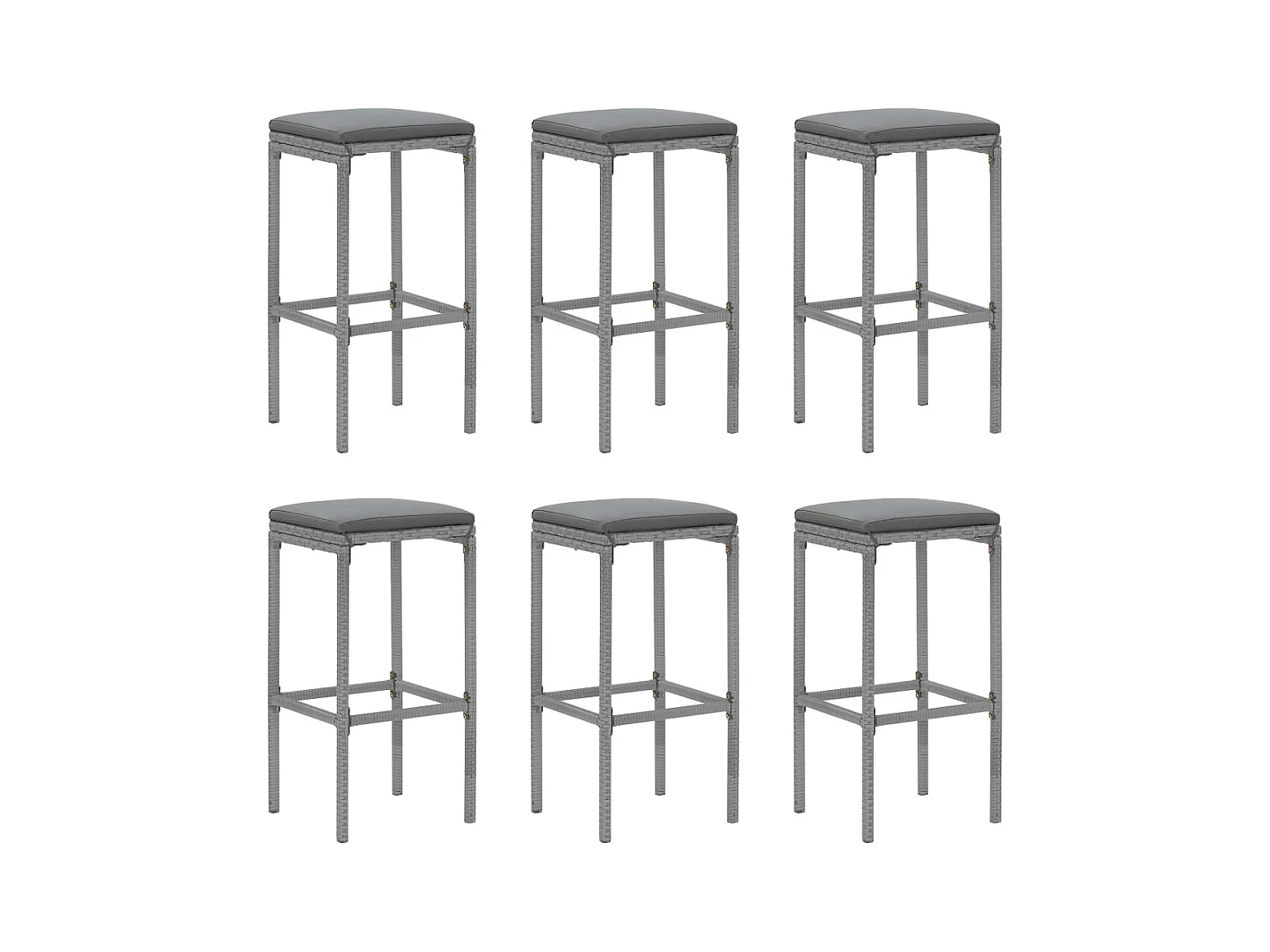 Eva Lynn Ensemble de bar de jardin 7 pcs avec coussins gris poly rotin
