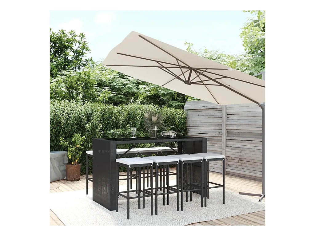 Allouez Ensemble de bar jardin 9 pcs noir poly rotin/bois massif acacia
