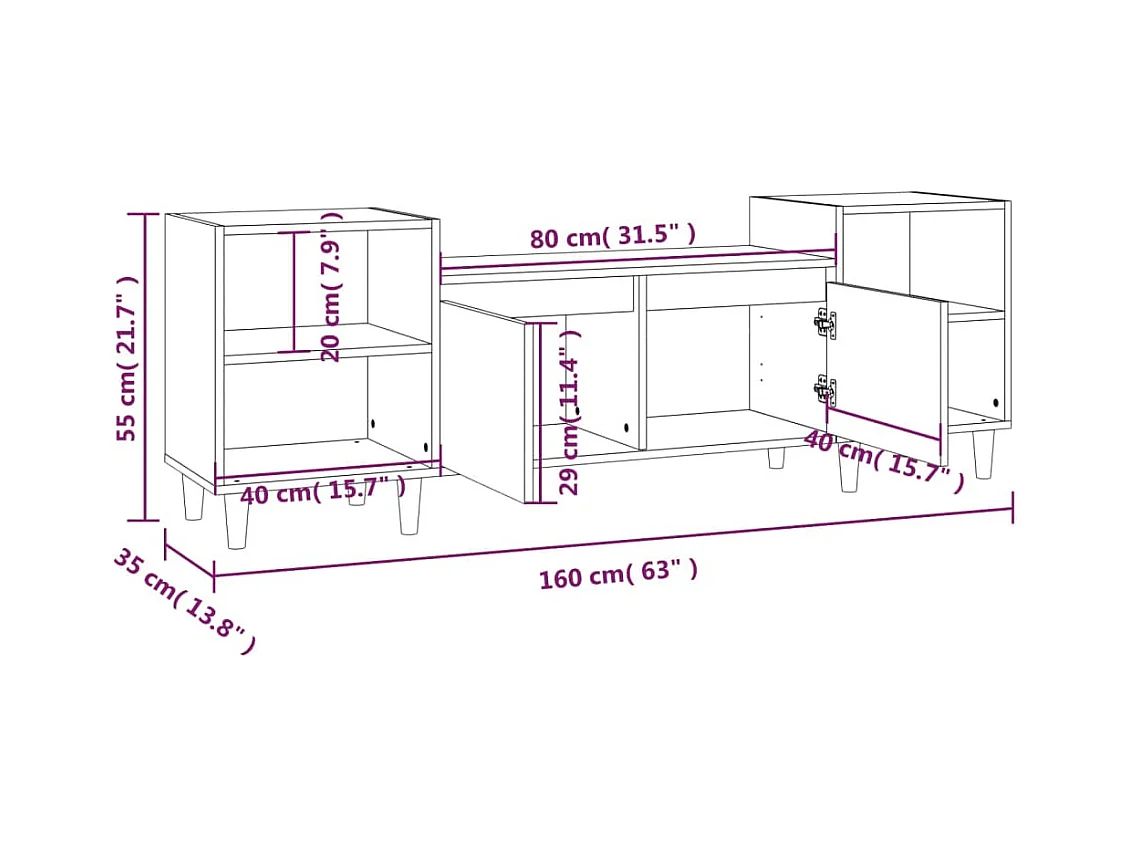 Grylis Meuble TV Chêne fumé 160x35x55 cm Bois d'ingénierie