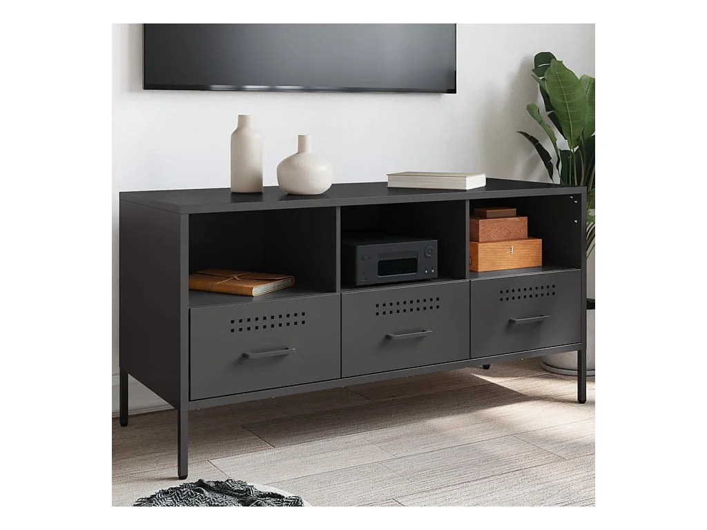 Lysri Meuble TV noir 100,5x39x60,5 cm acier