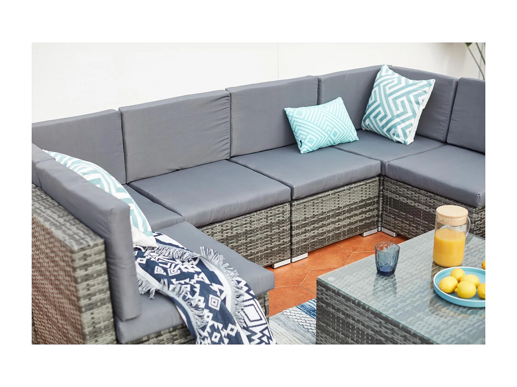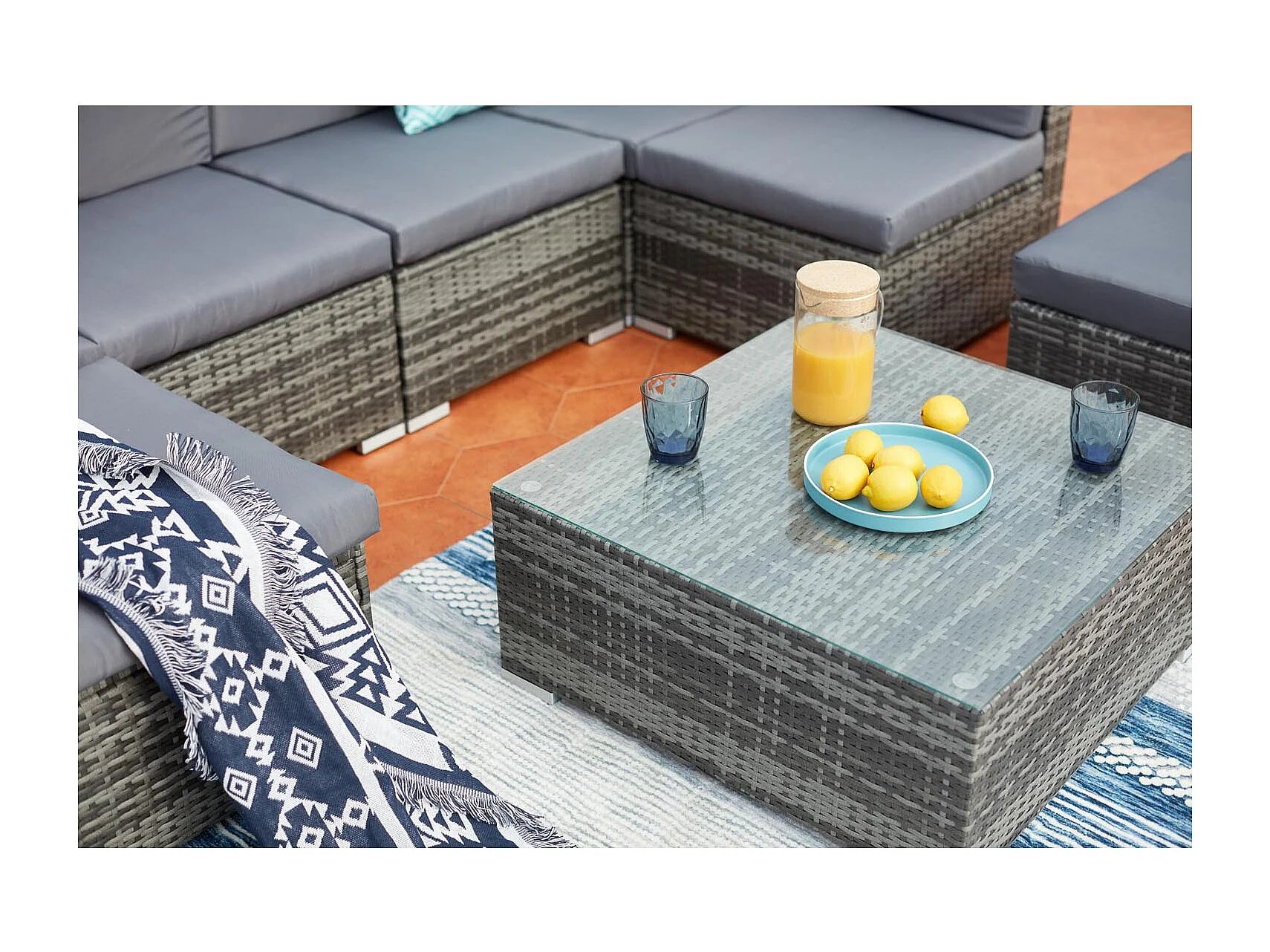 Salon de jardin bas 8 places en résine & acier gris GUADALO