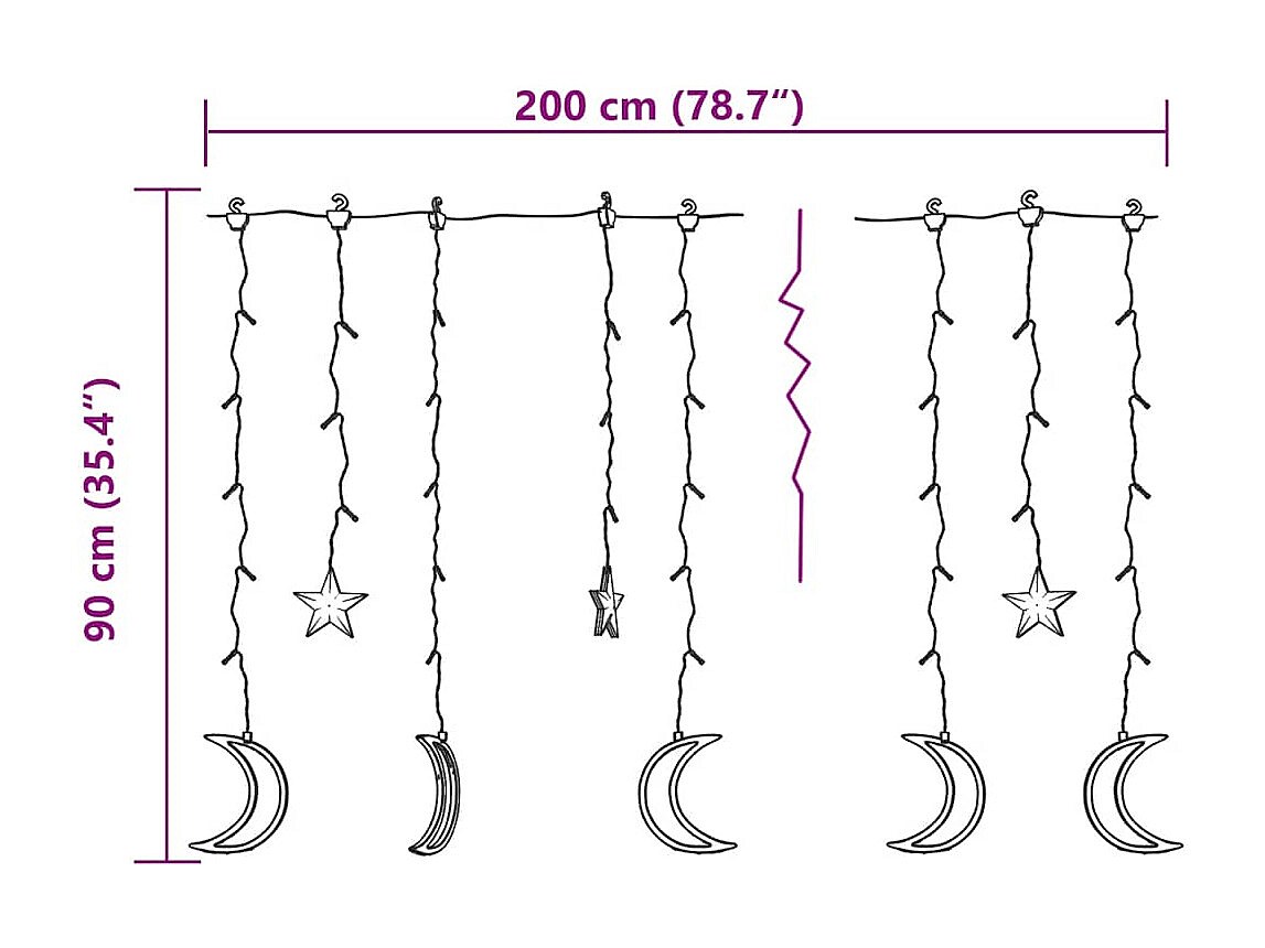 Guirlande lumineuse étoile et lune avec télécommande 138 LED