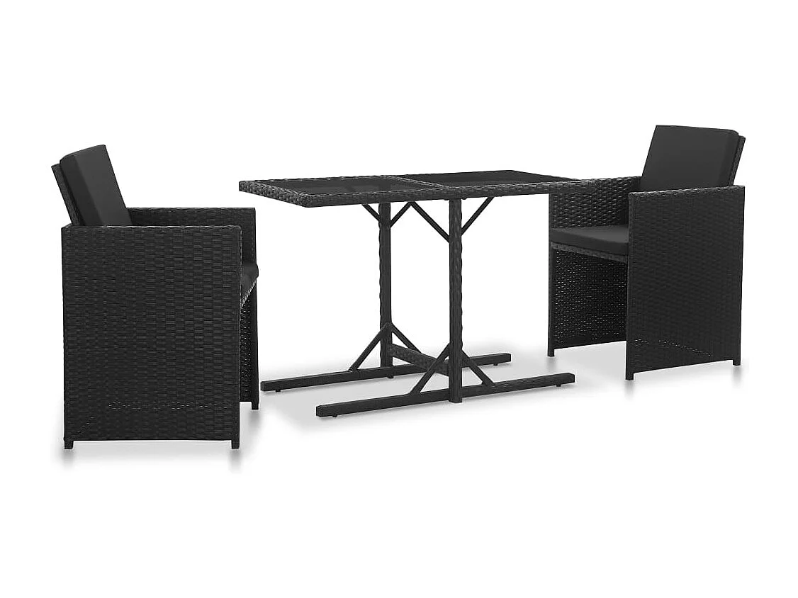 Eglantine Ensemble à manger de jardin 3 pcs Résine tressée Noir