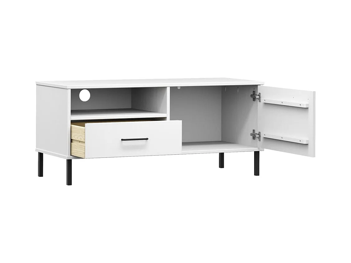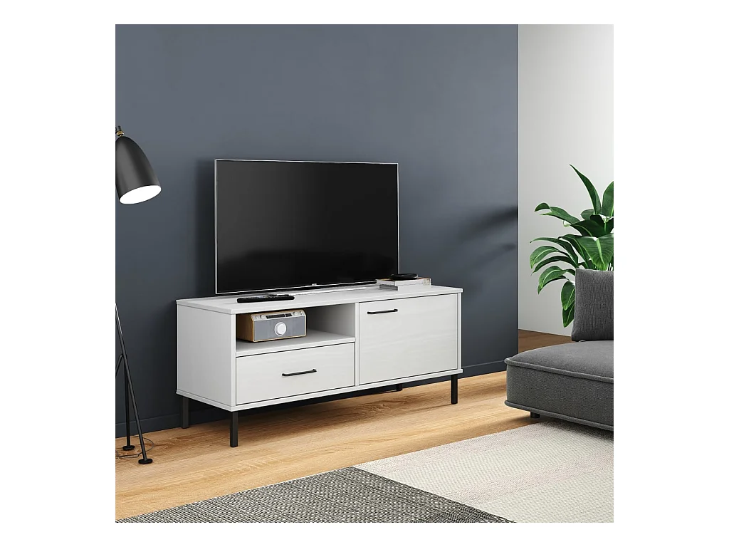 Gylmar Meuble TV avec pieds en métal Blanc Bois de pin massif OSLO