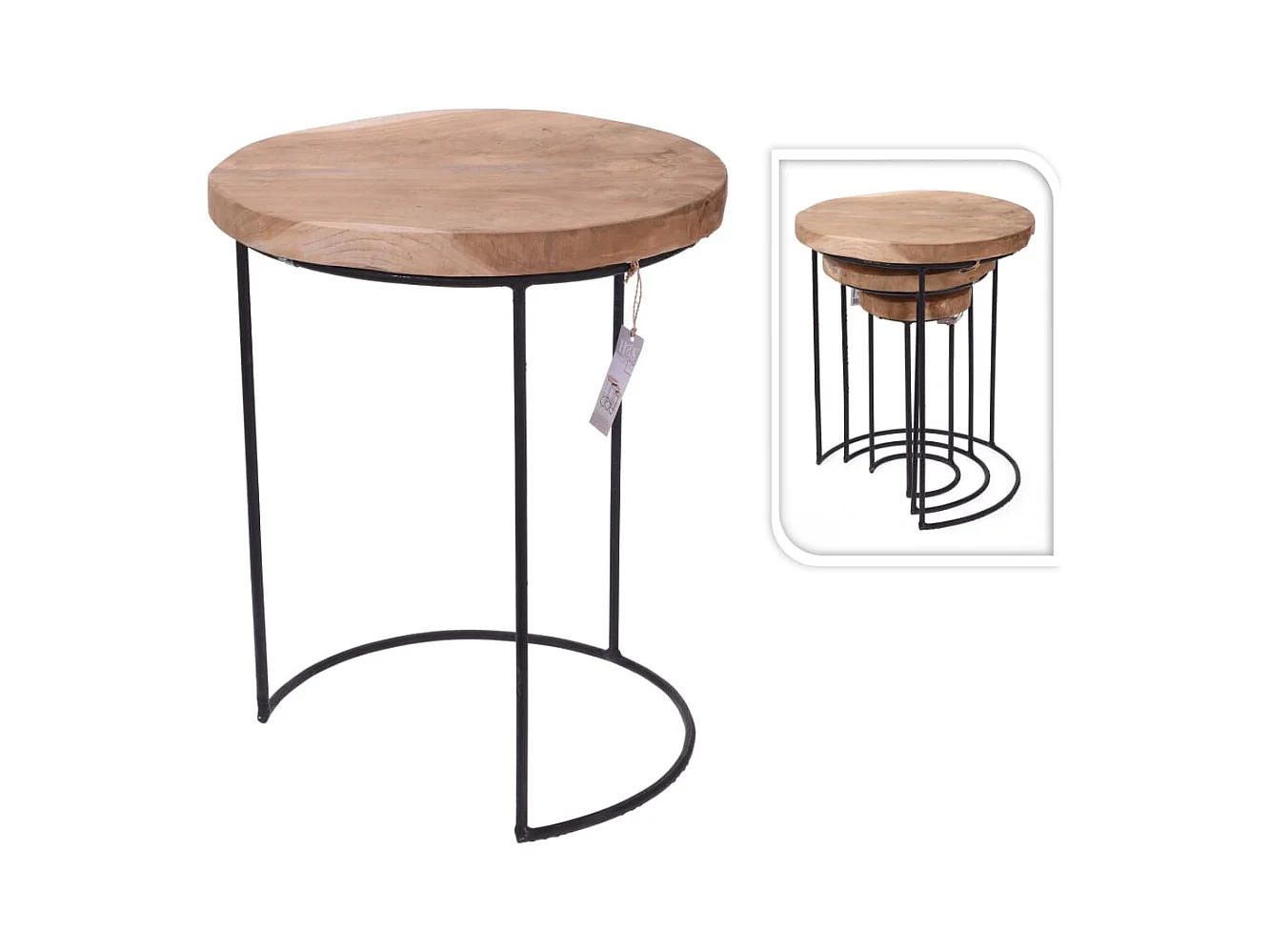 Ensemble de table d'appoint 3 pcs Teck et métal