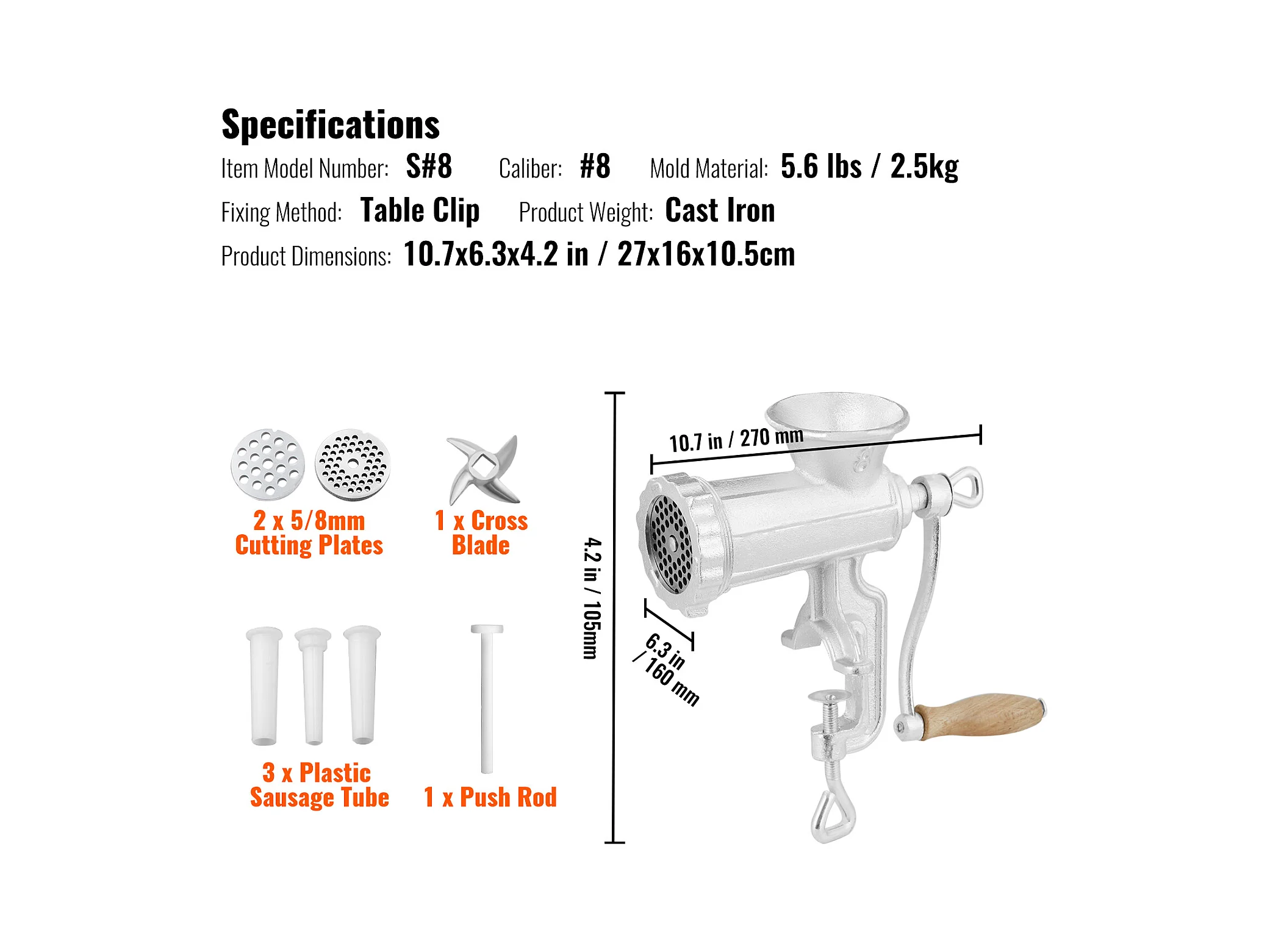 Hachoir à Viande Manuel SucceBuy, en Fonte Robuste avec Pince de Table en Acier