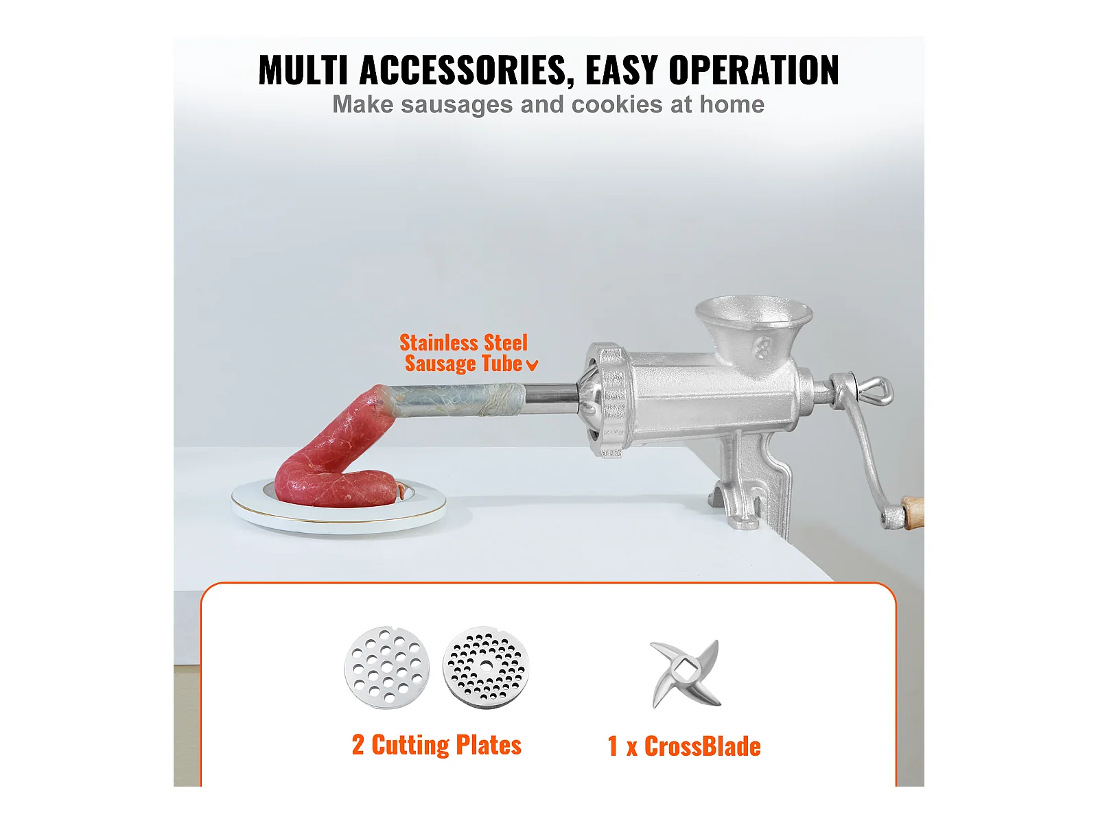 Hachoir à Viande SucceBuy Électrique Robuste, Capacité 1100 W et Poussoir à Saucisses, 450KG/h