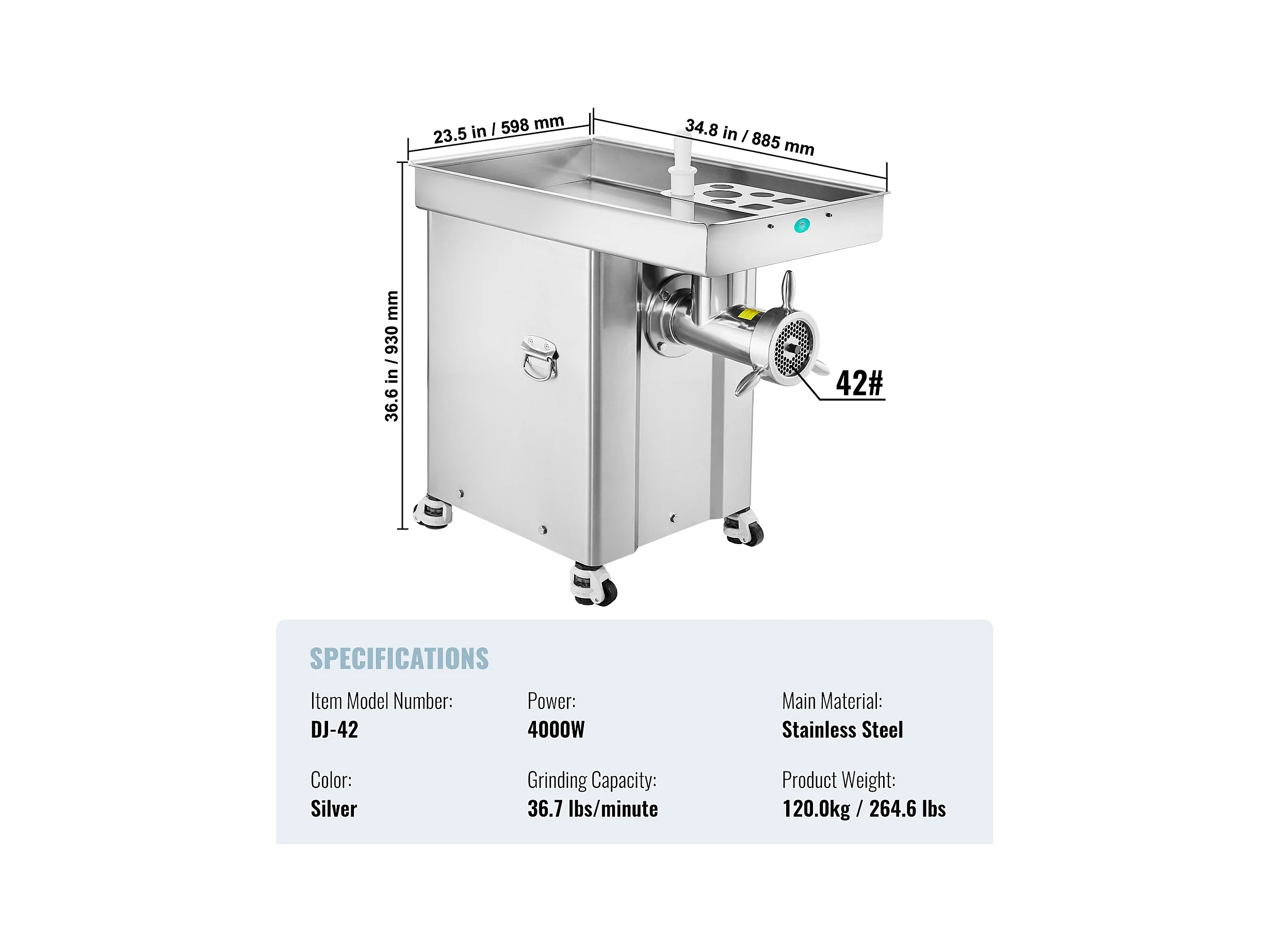 Hachoir à Viande SucceBuy Commercial Capacité de 17kg/min Acier Inoxydable, Parfait pour Préparations de Viande et Saucisses en Grande Quantité