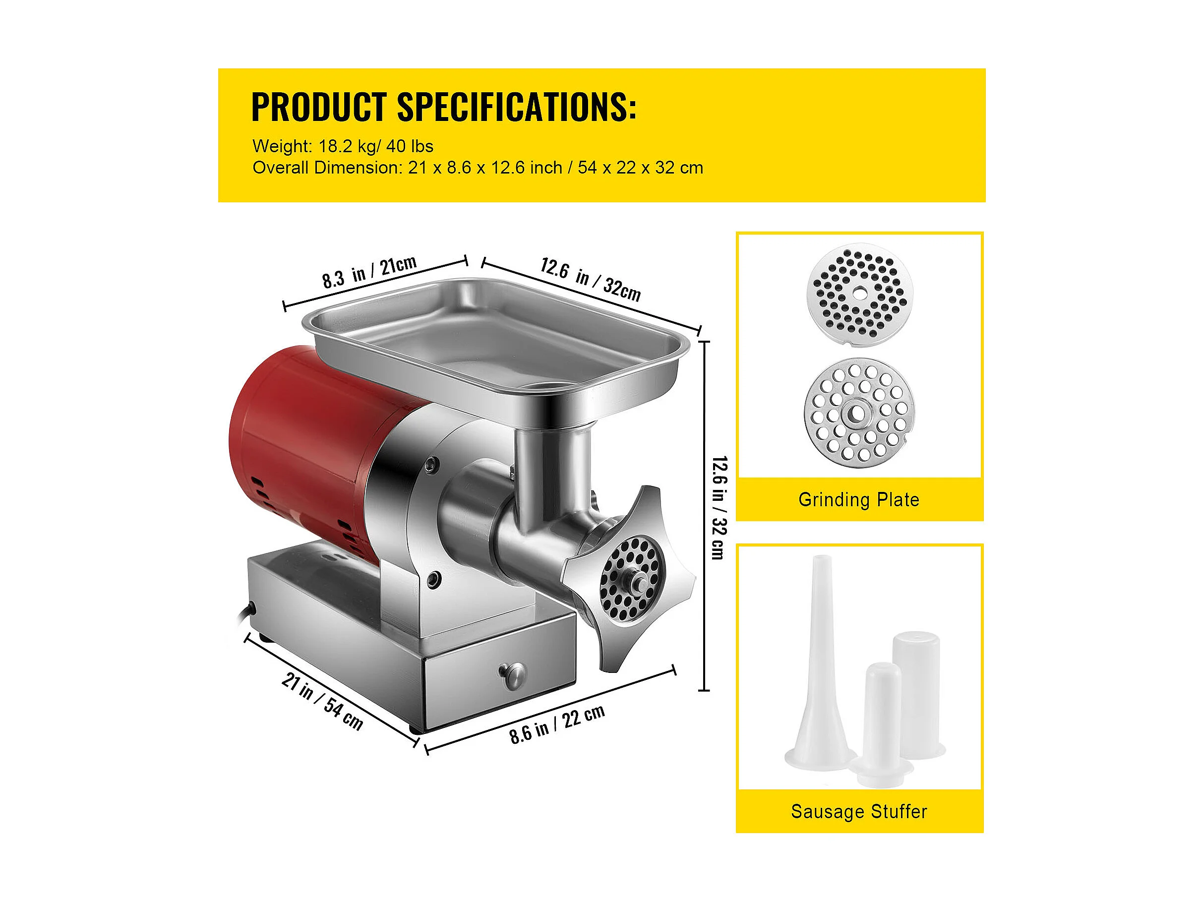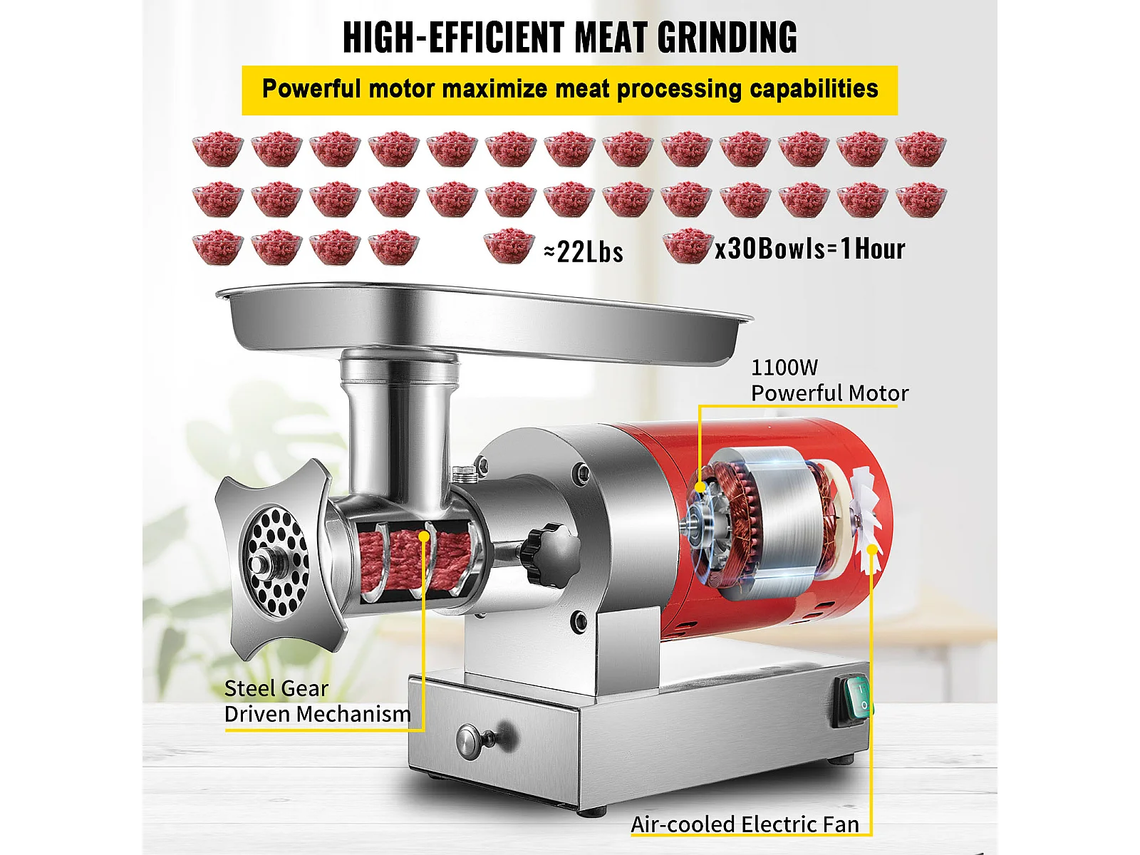 Hachoir à Viande SucceBuy Électrique 5kg/min Hachoir Électrique 1100 W, Excellent pour Cuisine Domestique et Petits Commerces Alimentaires