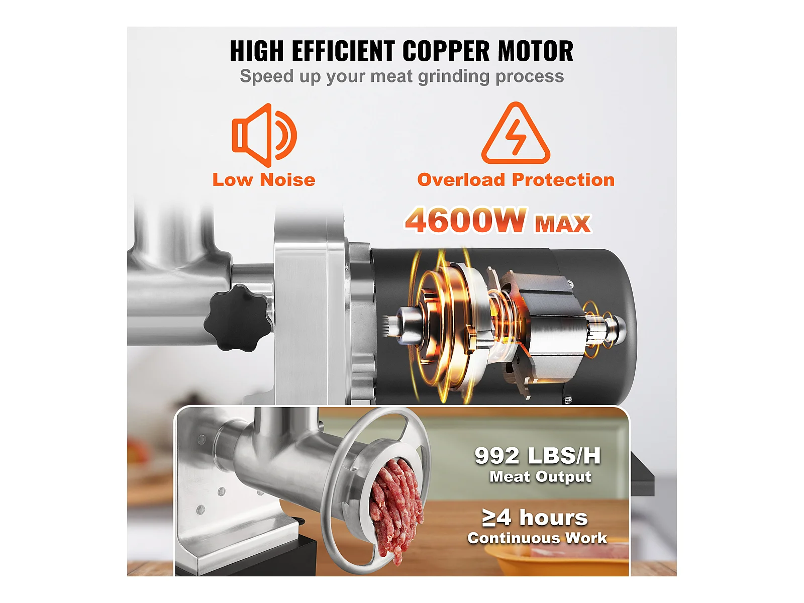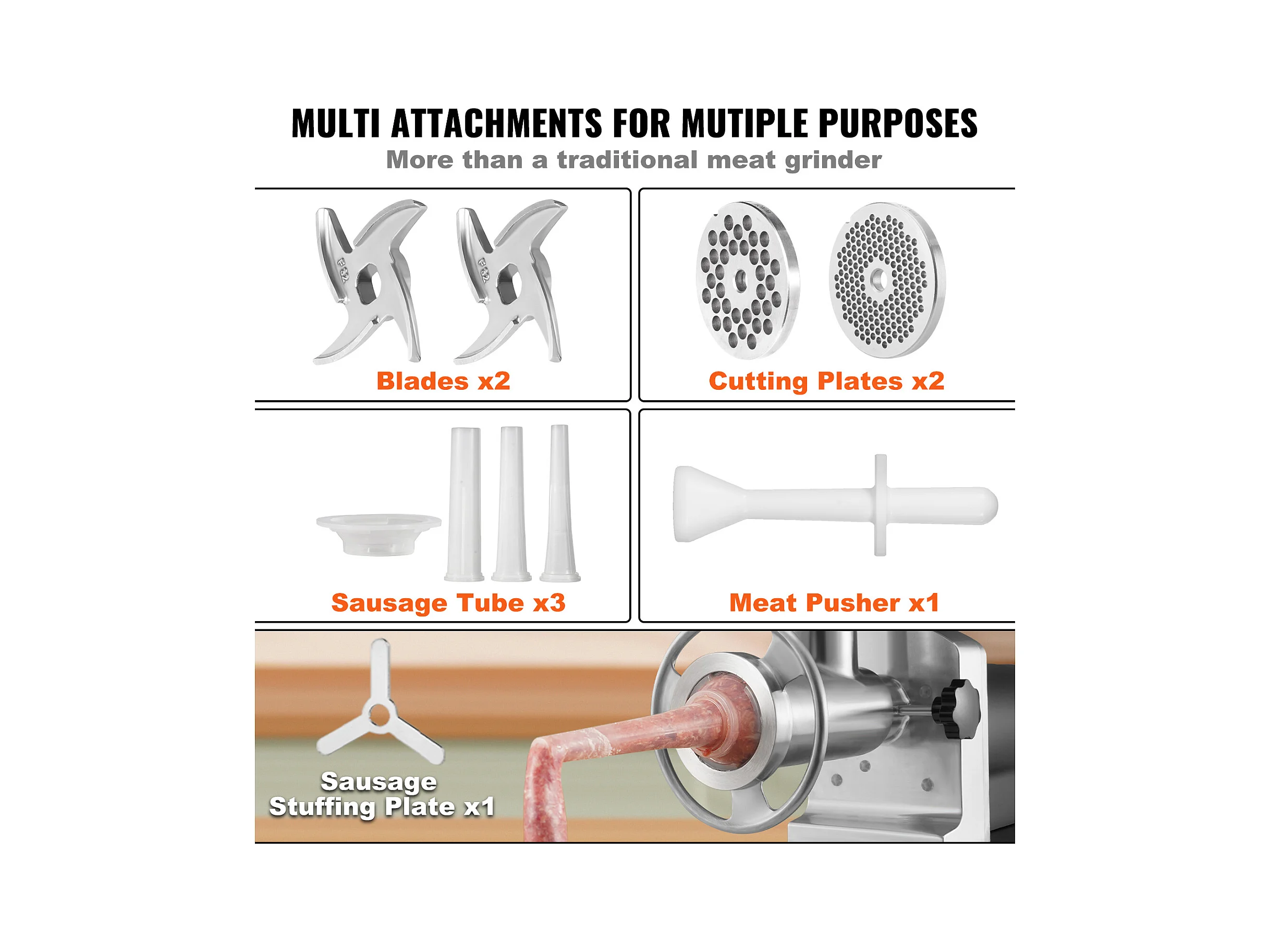 Hachoir à Viande SucceBuy Électrique Robuste, Capacité 1100 W et Poussoir à Saucisses, 450KG/h