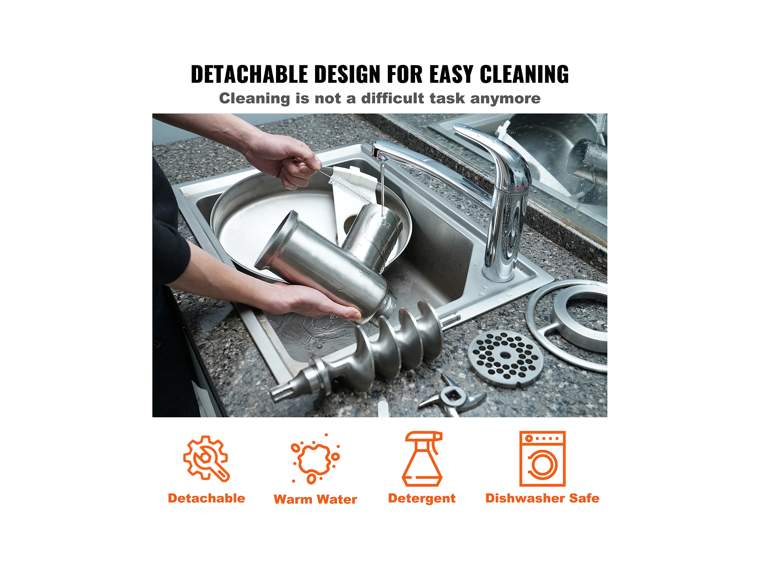 Hachoir à Viande SucceBuy Commercial 1100W, Acier Inoxydable, Capacité 204KG, Plaque de Lame de Coupe, Farceur de Saucisses