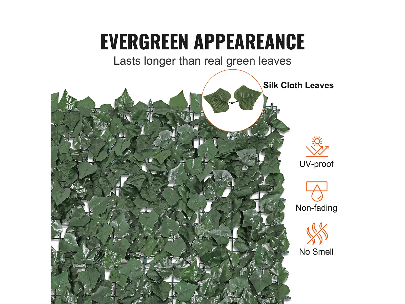 Haie Artificielle SucceBuy 99.06 x 248.92 cm Feuille d'Iierre Artificielle Écran de Clôture de Confidentialité Panneau de Décoration Haie