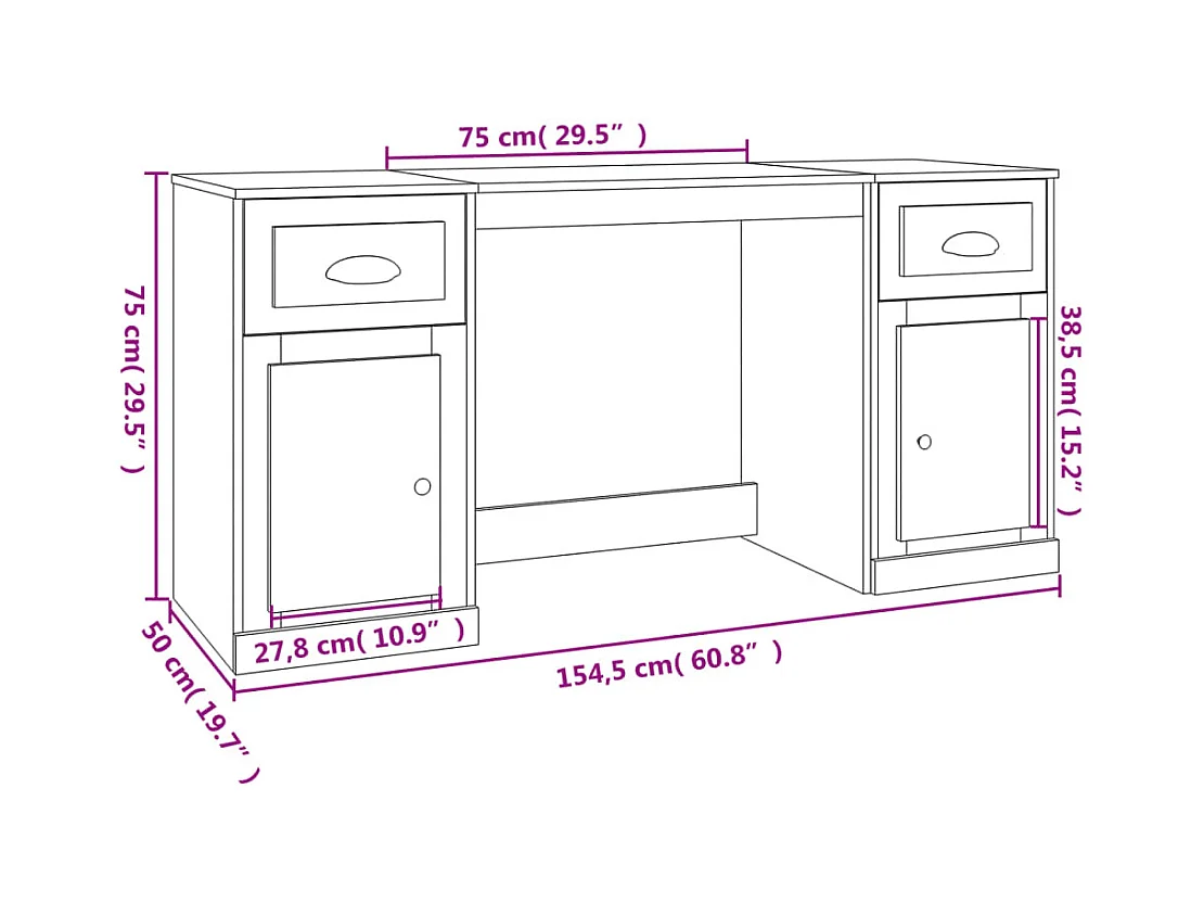 Bureau droit avec rangement style classique