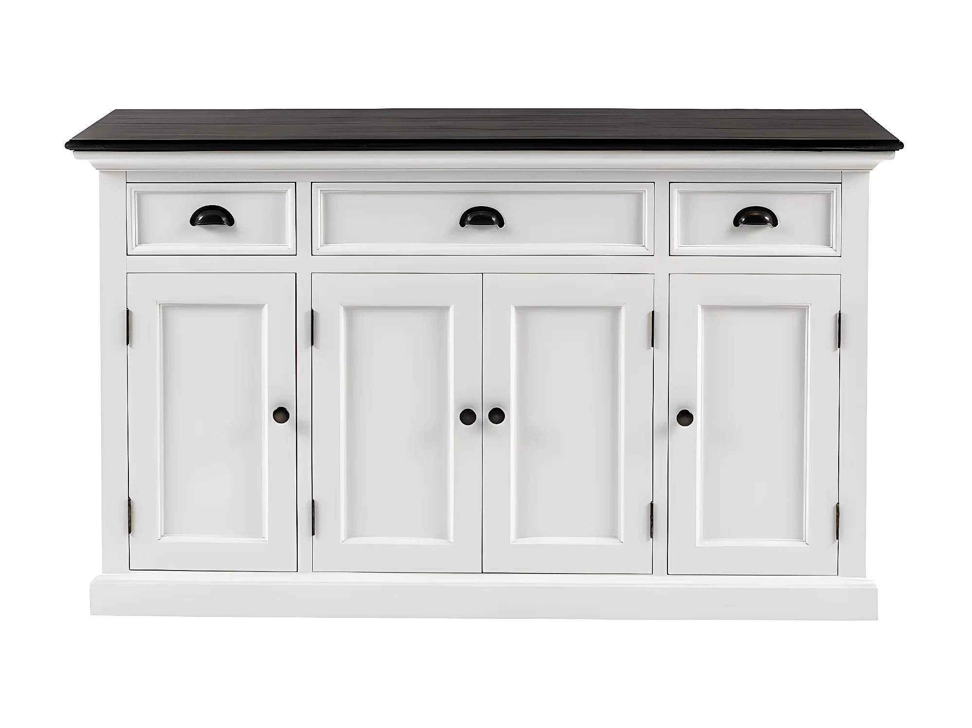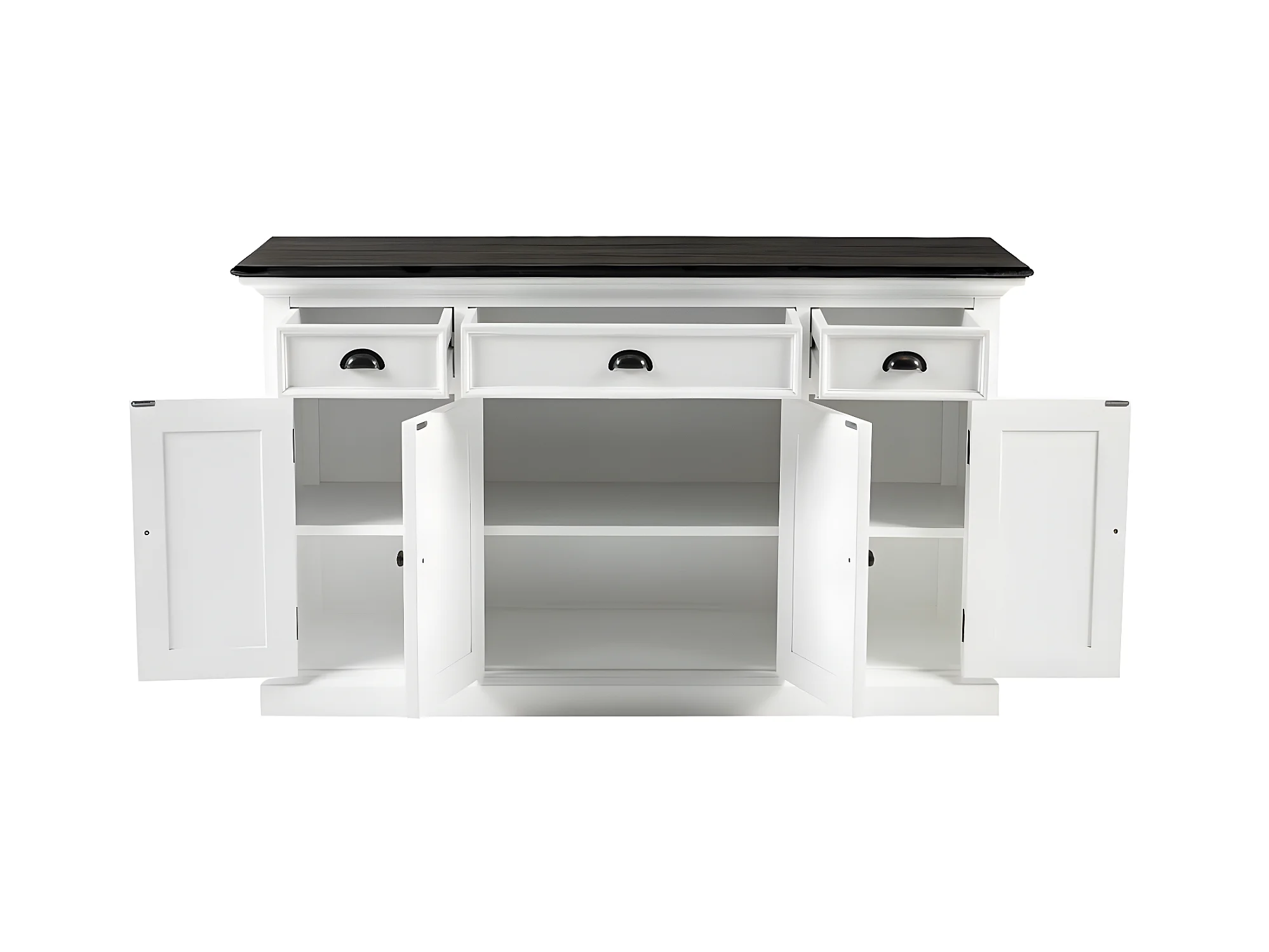 HalifaxContrast buffet 4 portes, 2 petit og 1 grand tiroir blanc, noir.