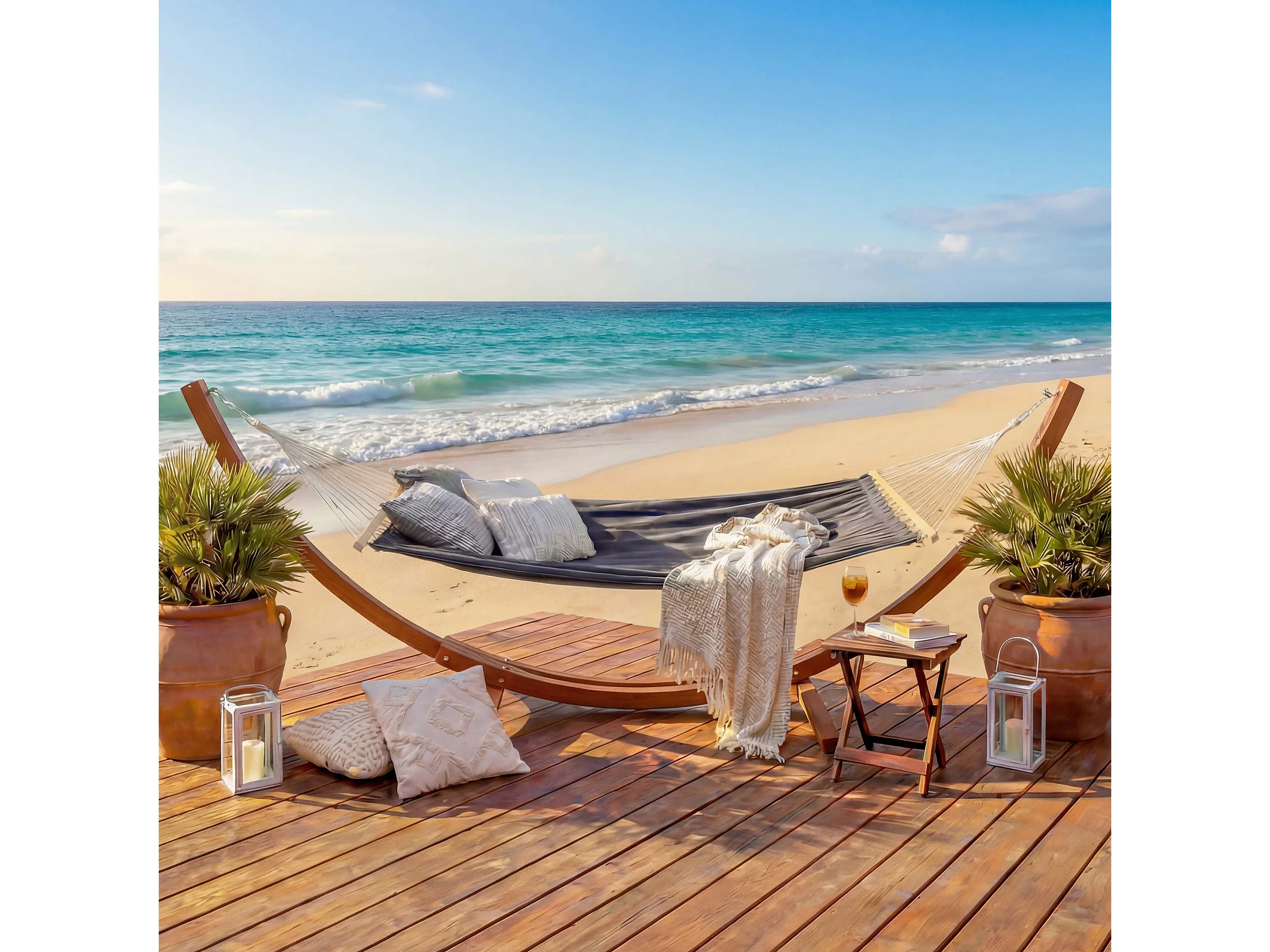 Hamac avec support MCW-J46, marron, tissu gris