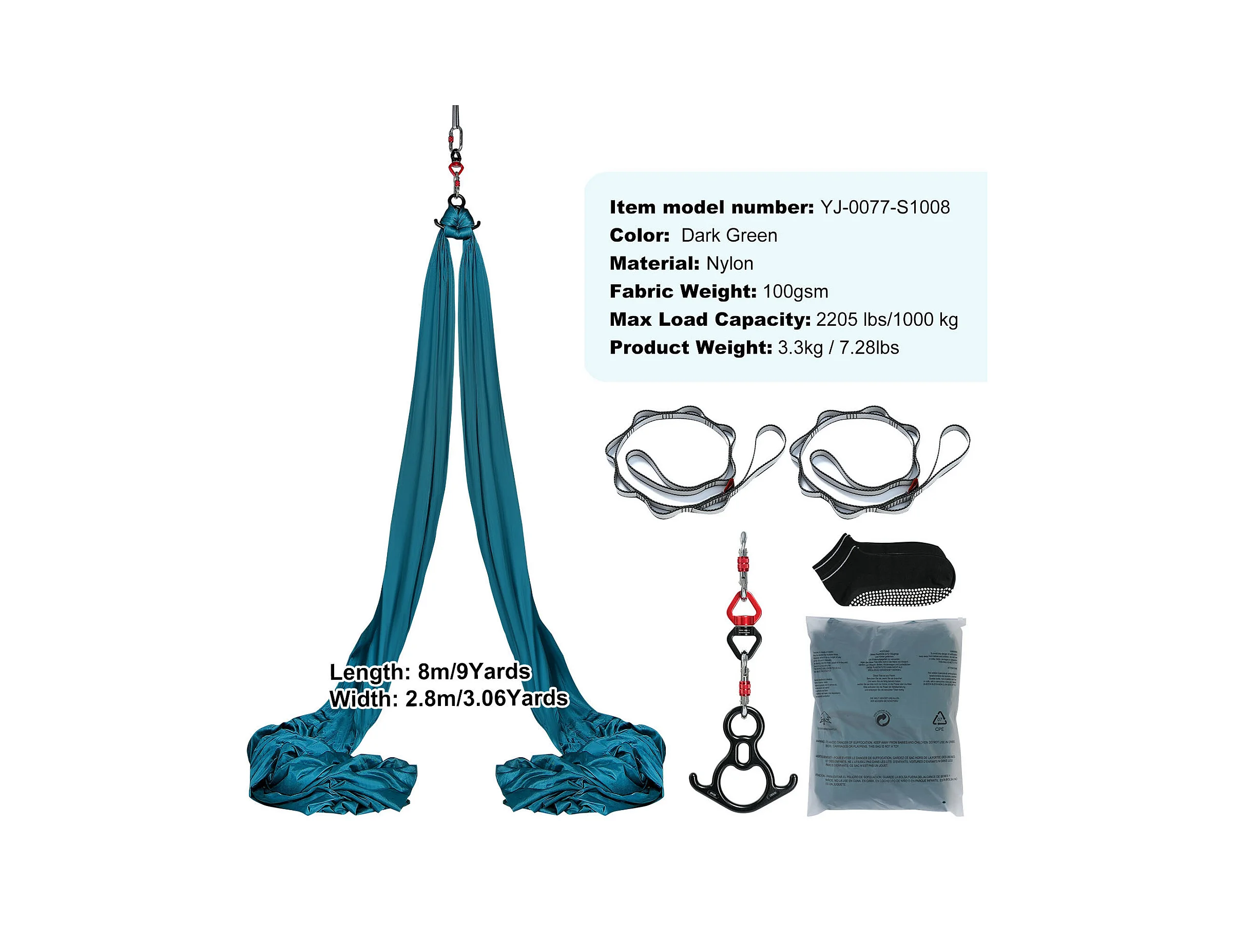 Hamac de Yoga SucceBuy, Balançoire Aérienne en Soie et Yoga, 8,7 m, Hamac Trapèze pour Inversion, en Soie Aérienne, Vert
