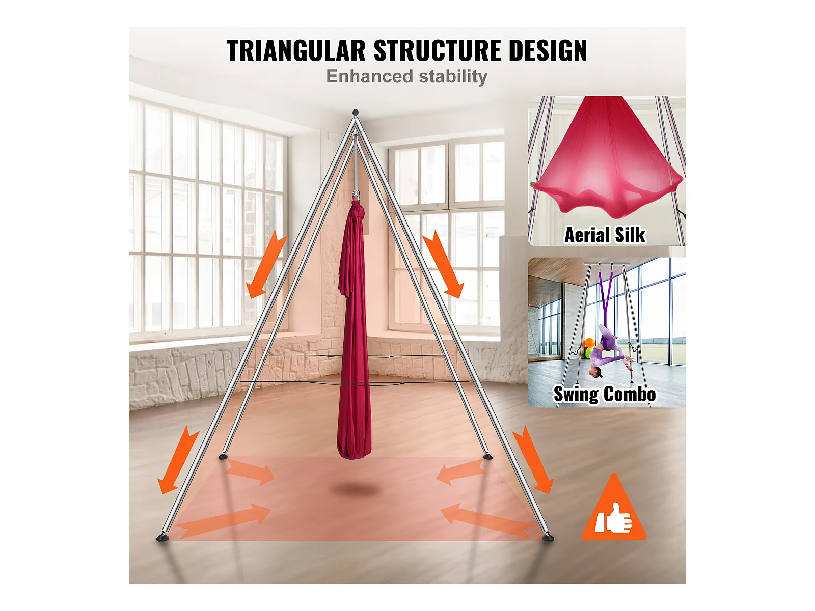 Hamac de Yoga Support de Balançoire Aérienne SucceBuy, Cadre de Yoga, Cadre en Acier Porteur de 250kg