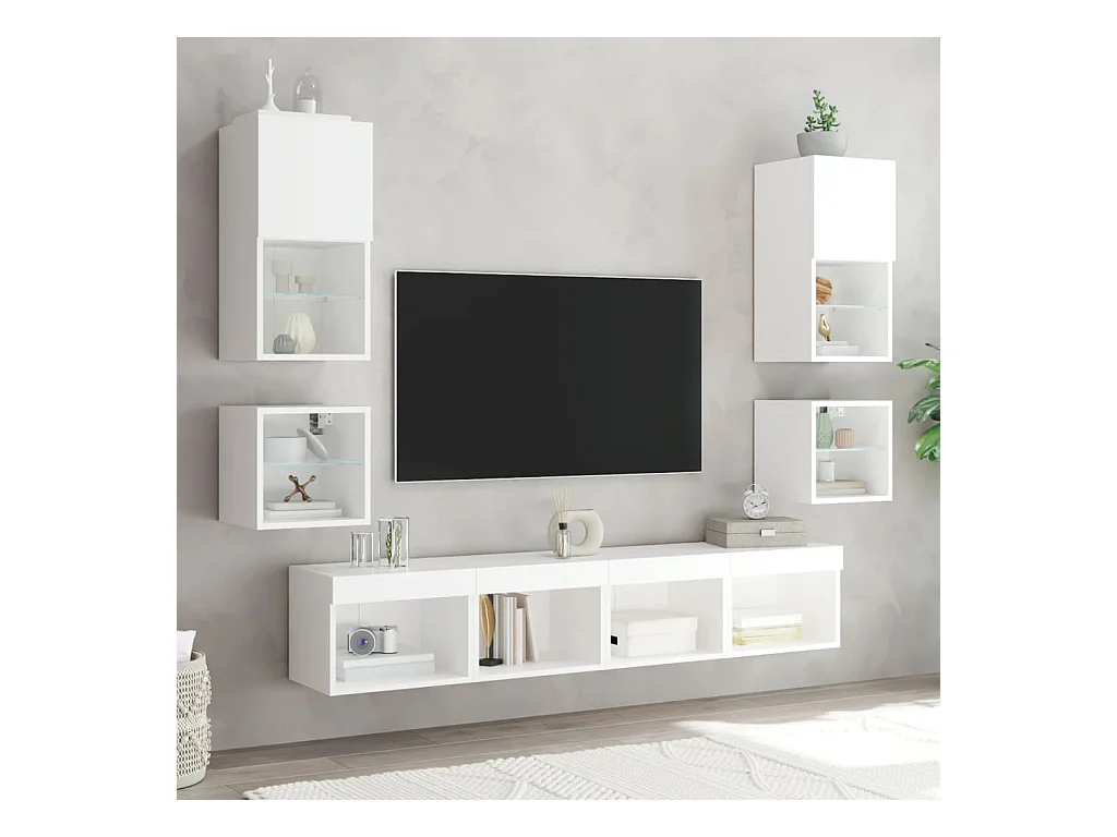 Gerben Meuble TV mural avec lumières LED blanc 30,5x35x30 cm