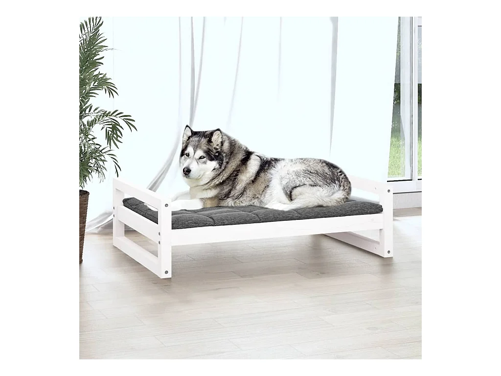 Lit pour chien blanc 105,5x75,5x28 cm bois de pin solide