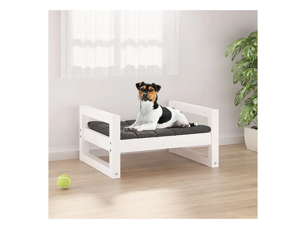 Lit pour chien blanc 105,5x75,5x28 cm bois de pin solide