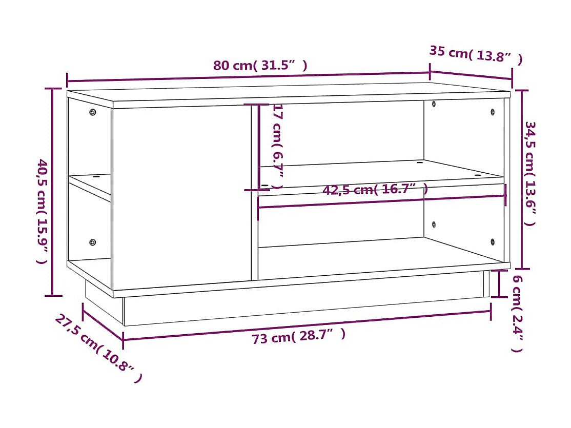 Harry Dean Meuble TV Gris 80x35x40,5 cm Bois de pin massif