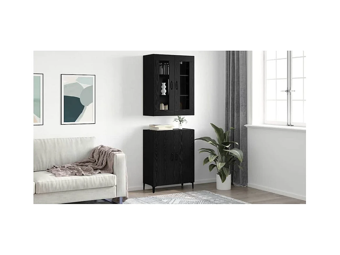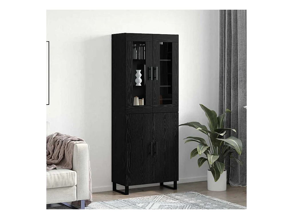 Highboard Chêne Noir 69,5x34x180 cm Bois d'Ingénierie