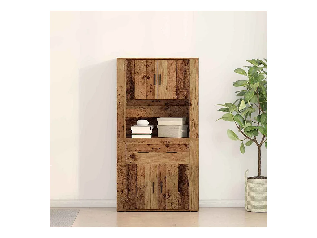 Highboard vieilli 80x33x150 cm en bois d'ingénierie