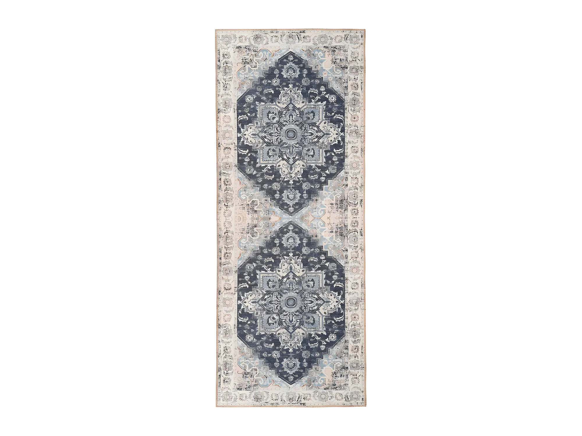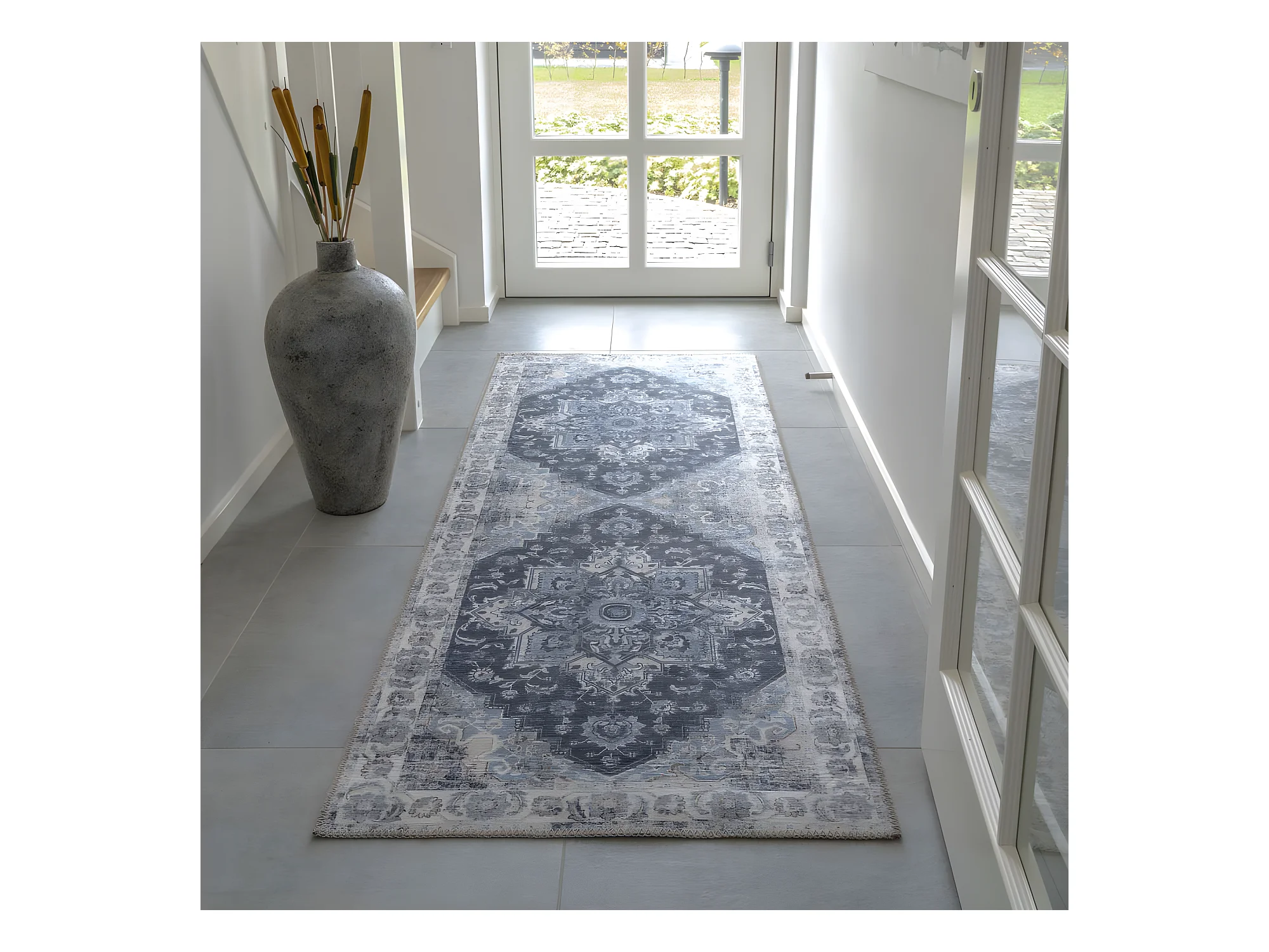 Havana III - Tapis vintage en chenille - Bleu et beige - 80x200cm