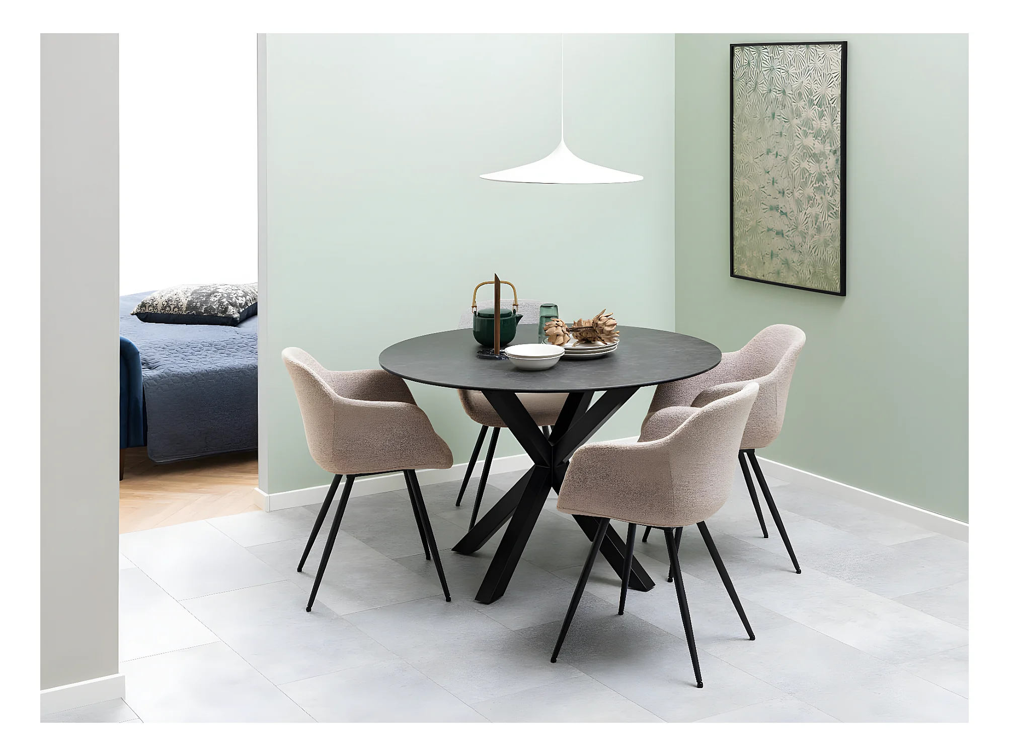 Lot de 4 salle à manger, peluche beige, dossier ergonomique, pieds en métal noir - pour salle à manger ou salon