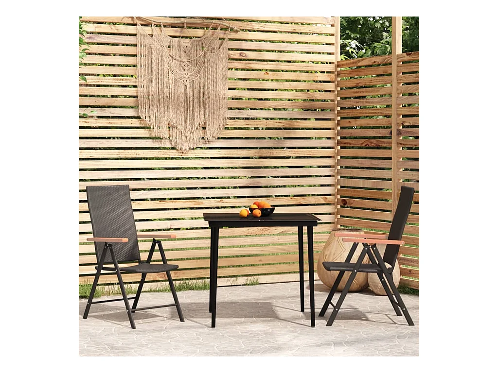 Azzedine Ensemble à manger de jardin 3 pcs Noir