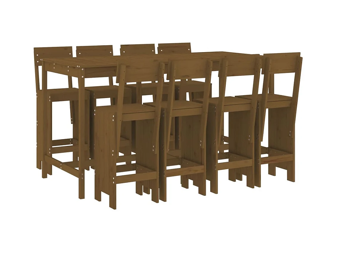 Henri-Gabriel Ensemble de bar de jardin 9 pcs marron miel bois de pin massif